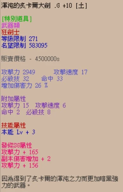 G10渾沌的炙卡爾大劍(渾大)SG發條+N9狂劍渾沌套 38H