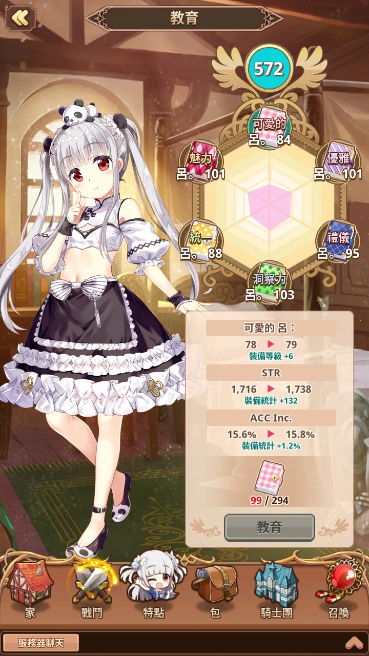 女兒教育572等,衣服目前全齊(一般6件,泳裝3件,女僕3件)