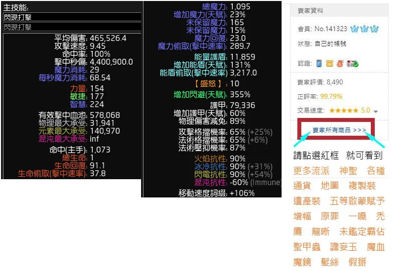 2.我賣的流派(不包含小資)有3大保證 A.滿暴擊滿命中(除了不用暴擊或命中的流派) B.如果有用魔血的話 功能藥劑後綴保證T1詞(暴擊-全抗-攻速施速-閃避護甲-跑速這些等等)+洗好點燃石效果 C.附上POB數據 讓你核對裝備 安心有保障