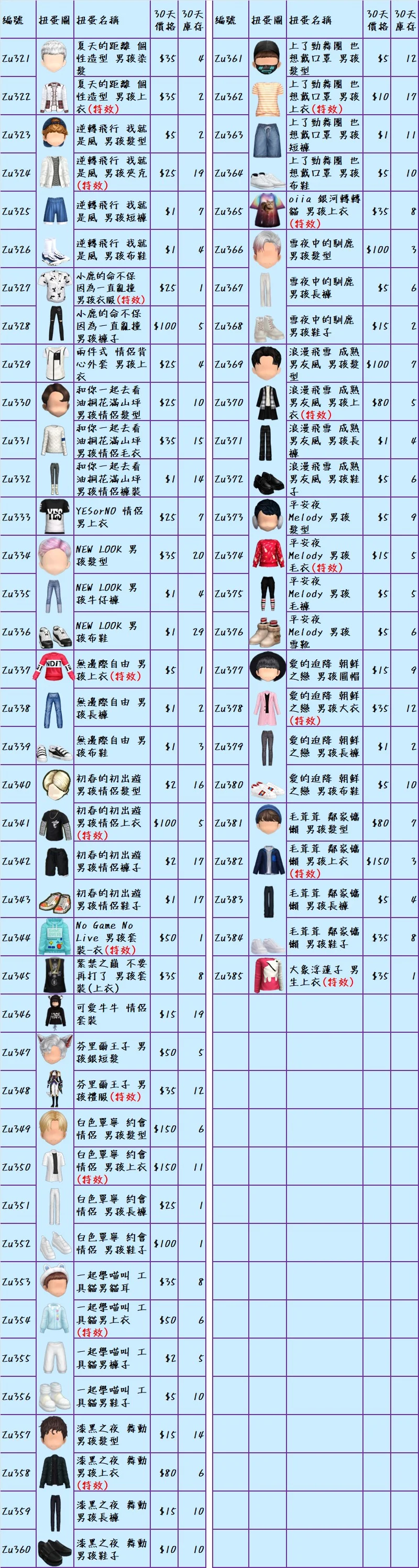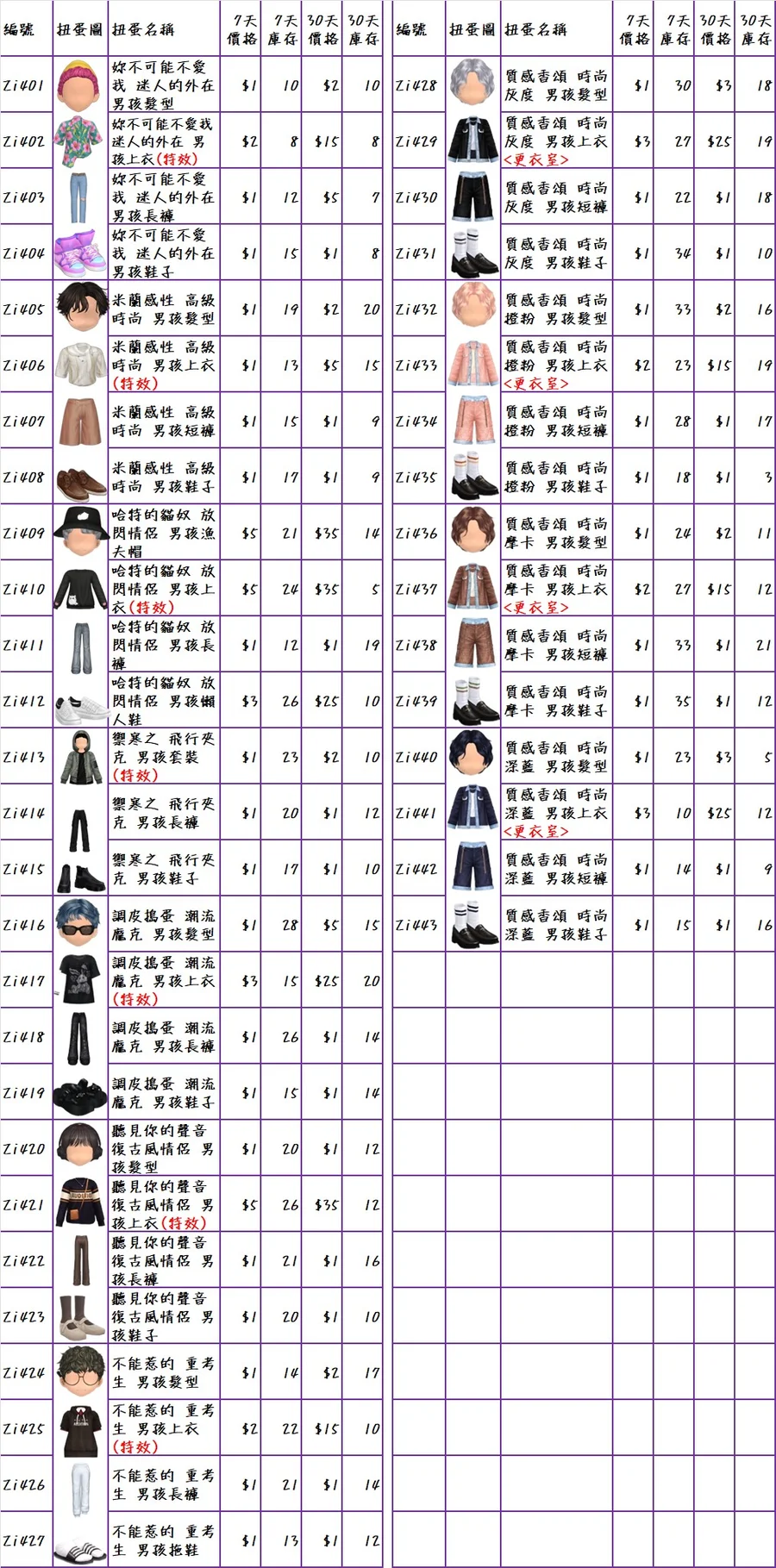 ★★需要請私訊或留言正確名稱(包含男生或女生的)及數量★★