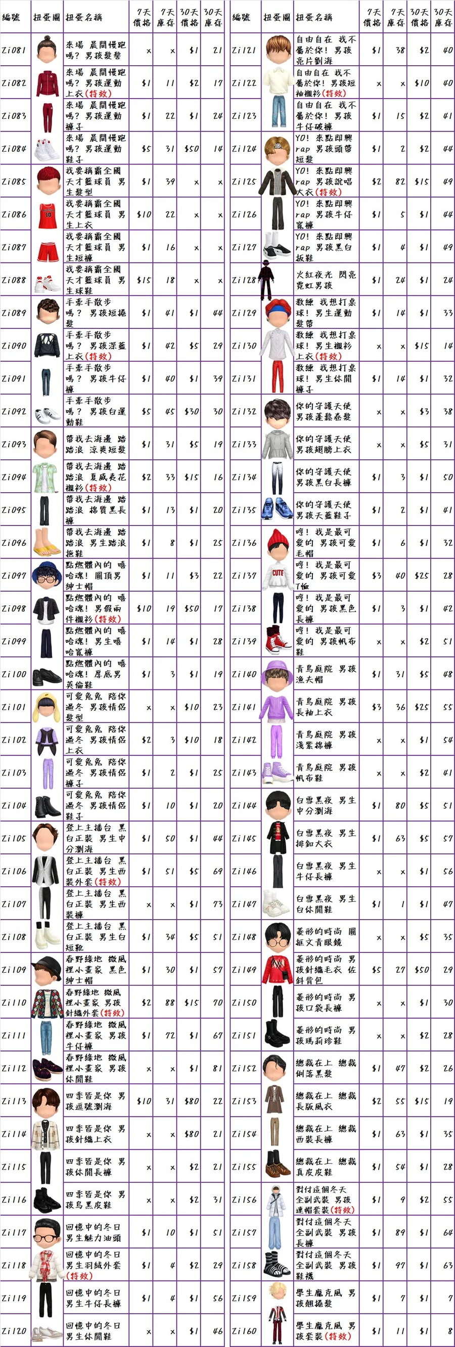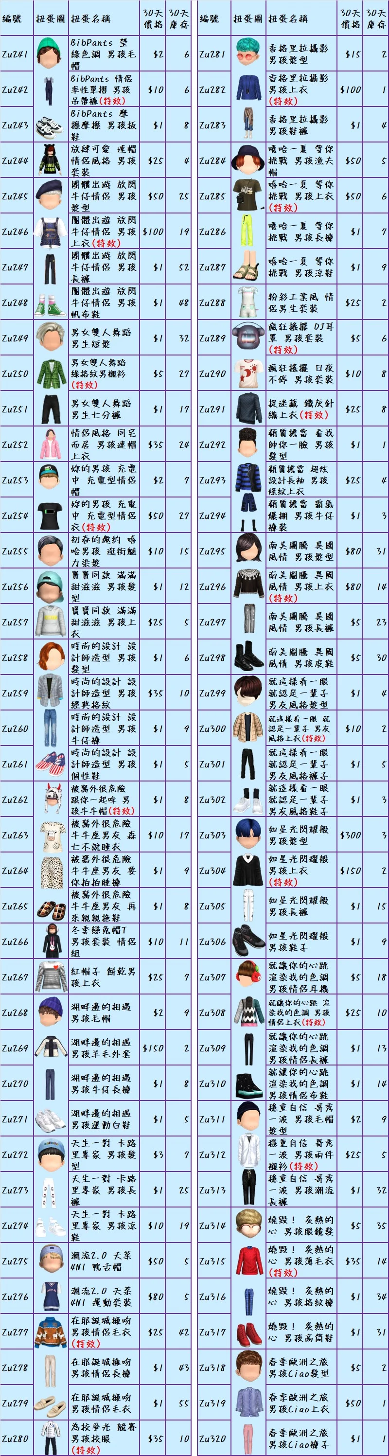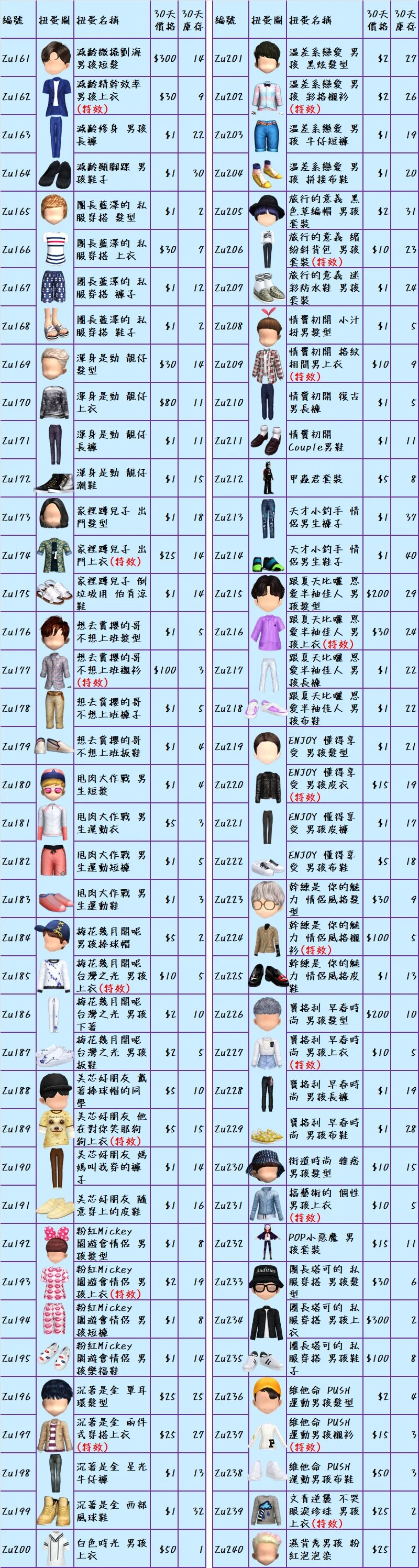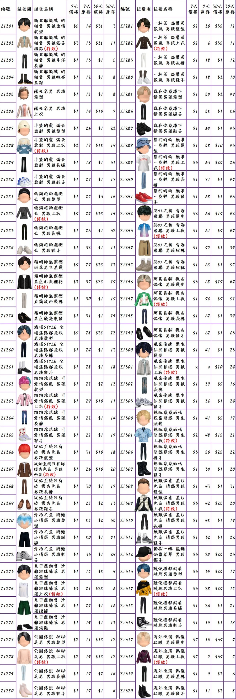 ♥隨機期間B禮包$300(普扭7天:隨機的頭x40個、衣x40個、褲x40個、鞋x40個、飾品x40個、臉型x40個)♥