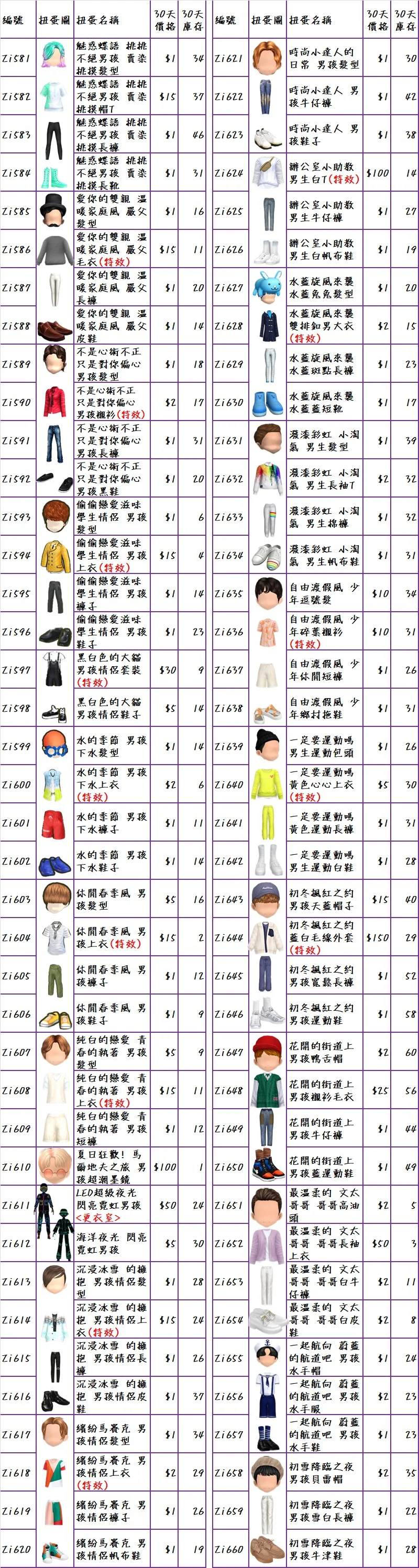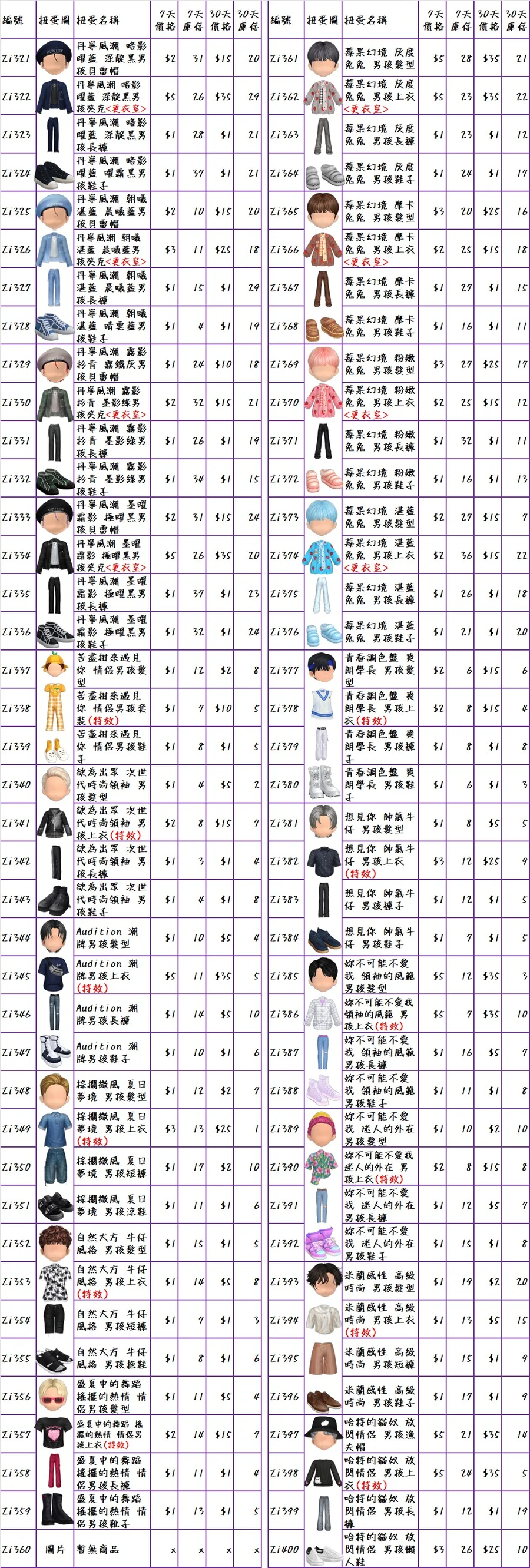 ♥隨機期間C禮包$100(普扭7天or30天:隨機的頭x5個、衣x5個、褲x5個、鞋x5個、飾品x5個、臉型x5個)♥