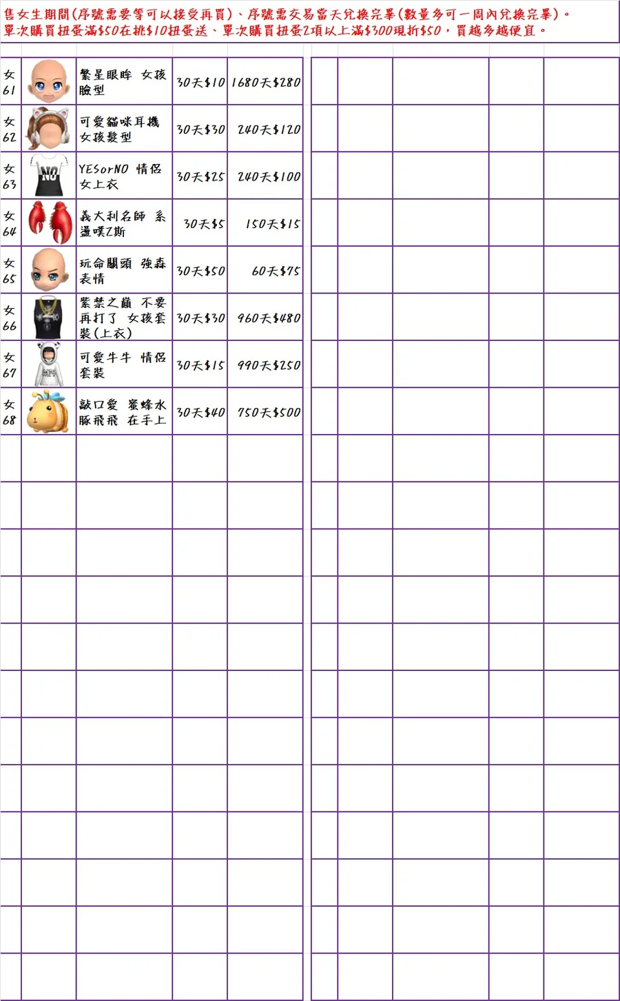 女31 人家想買那個 女孩臉型 30天$5 120天$10