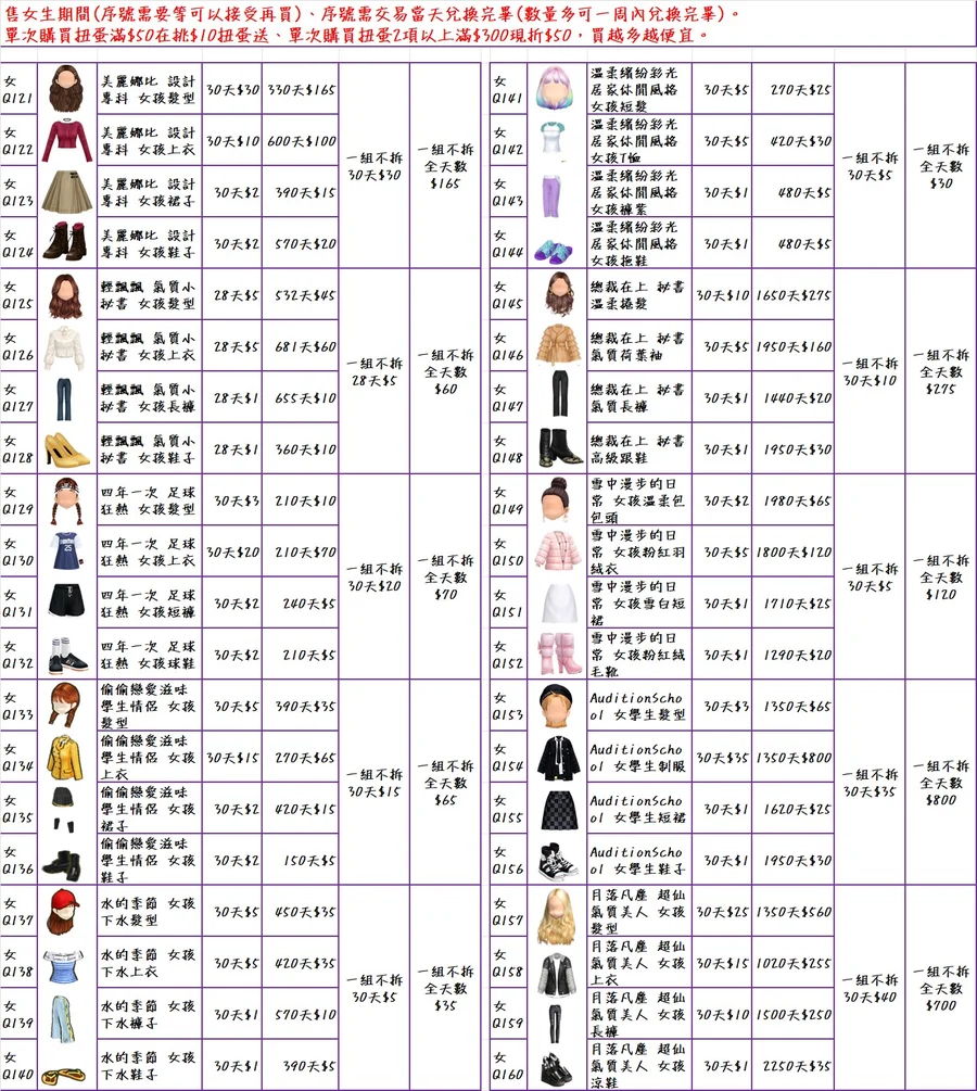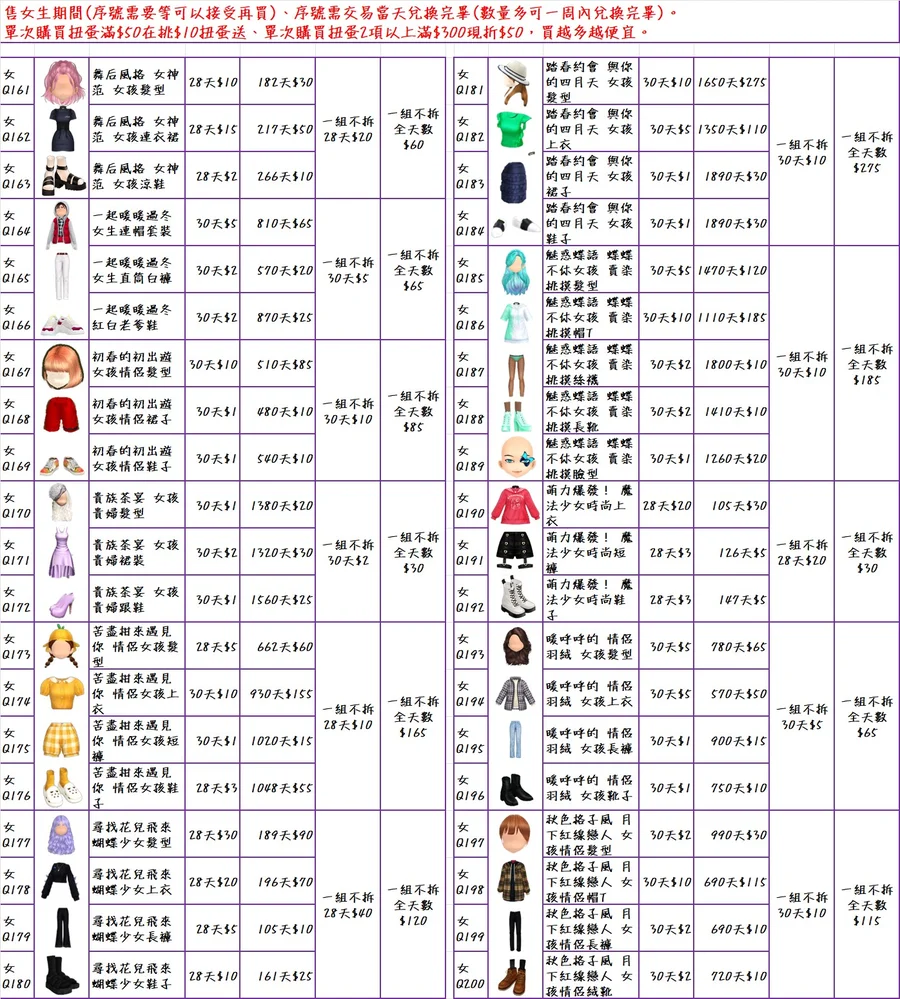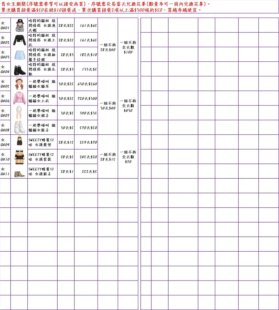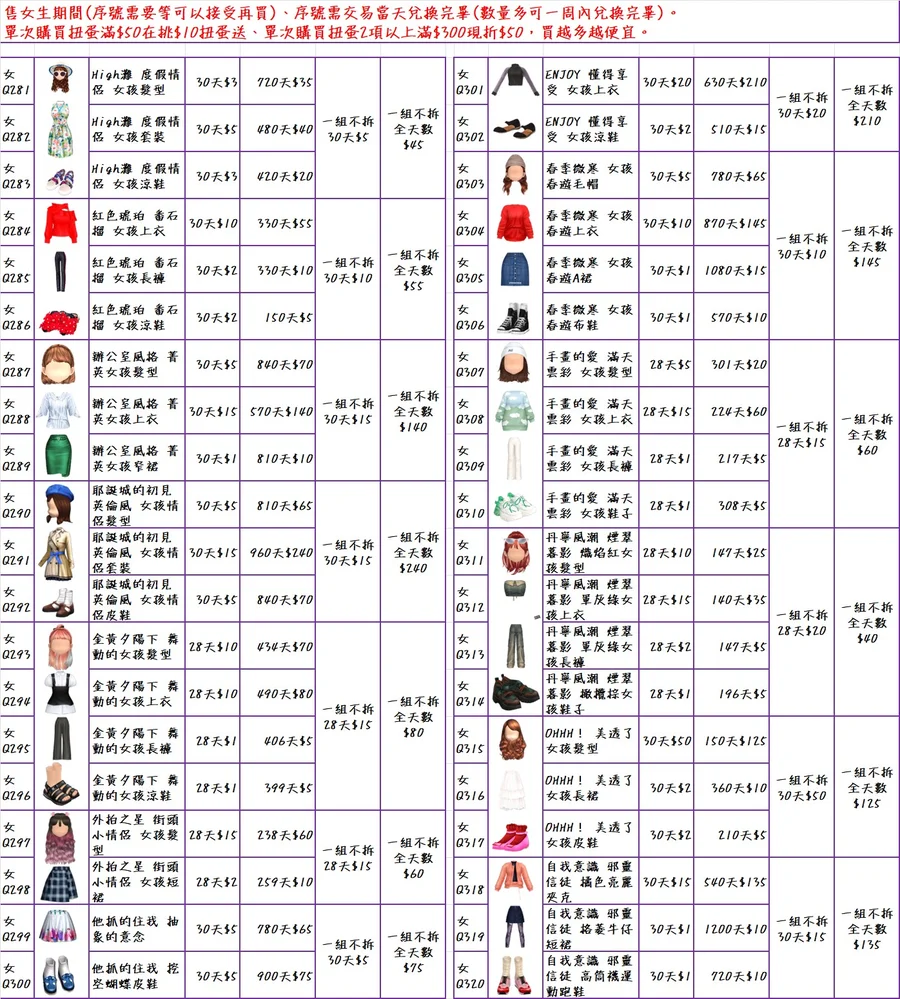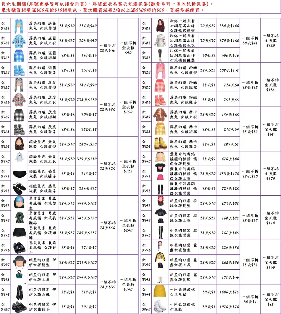 女Q398 明星的日常 露露女孩套裝 28天$10 175天$30