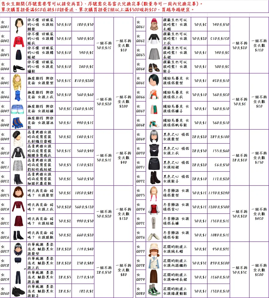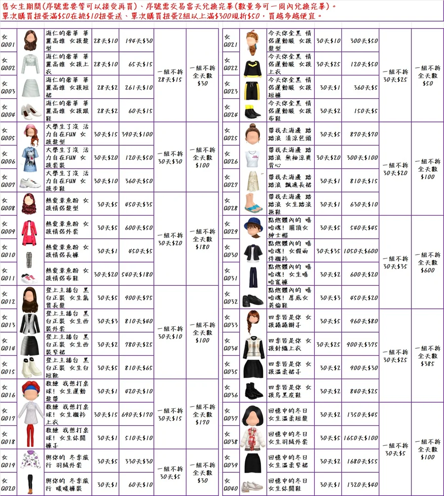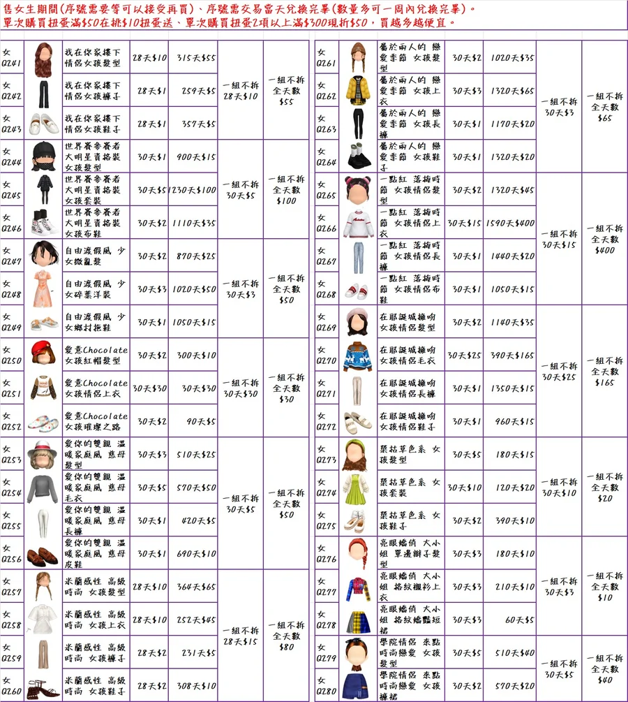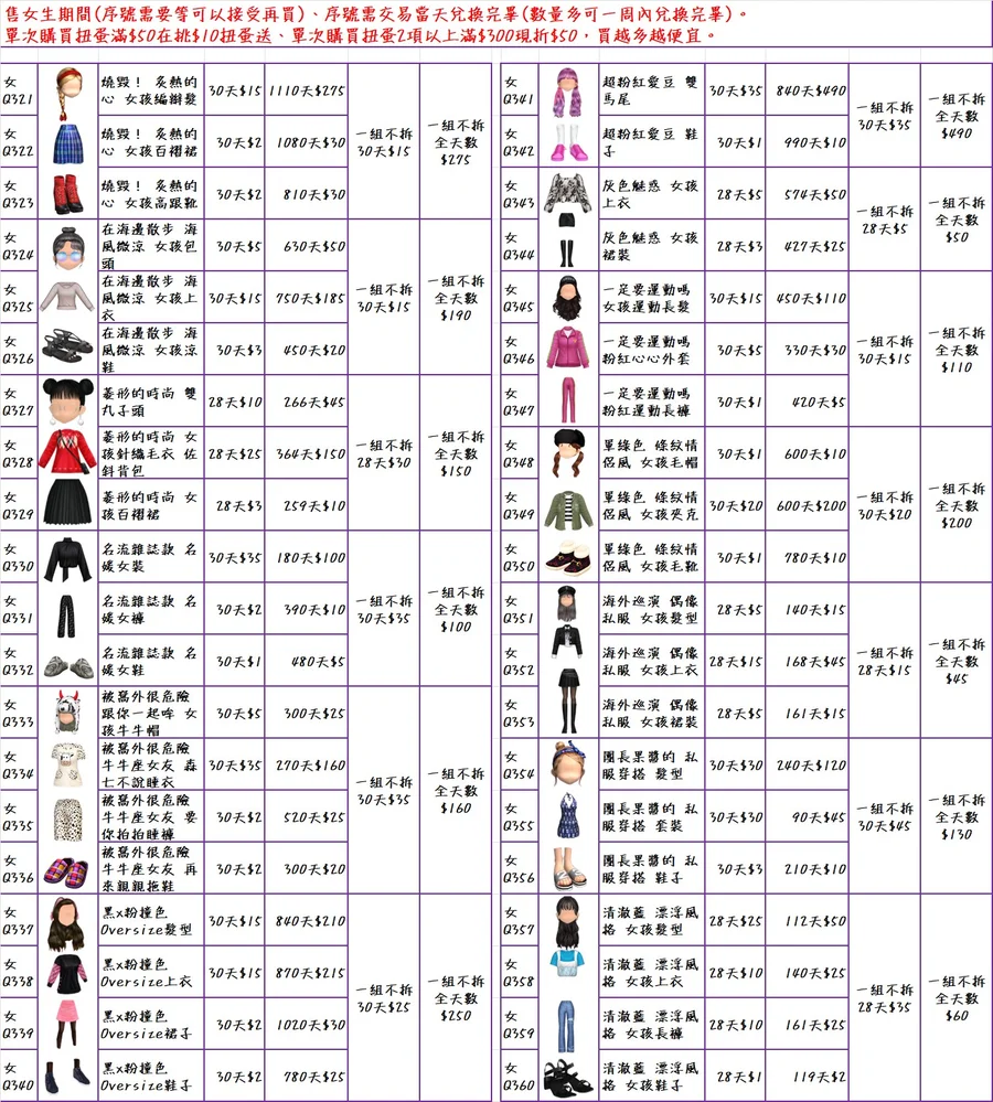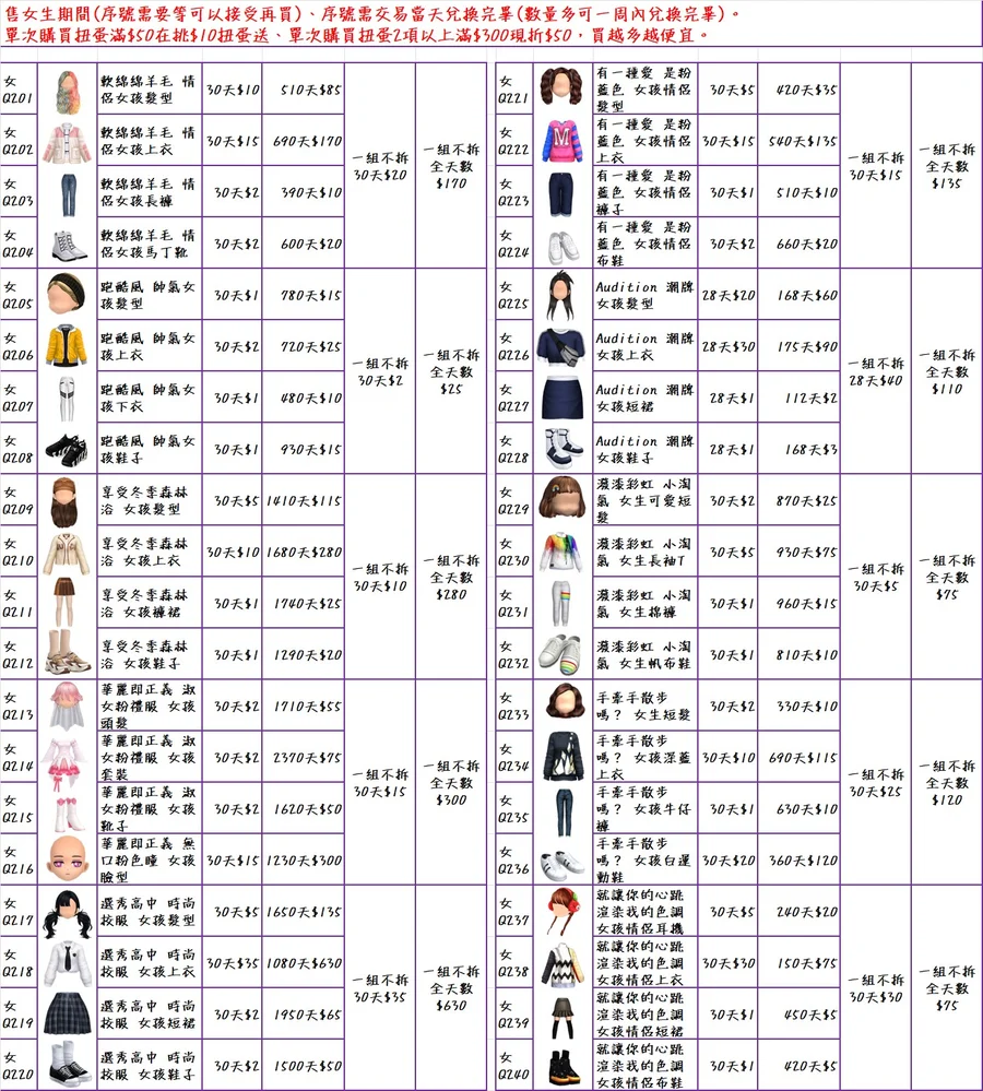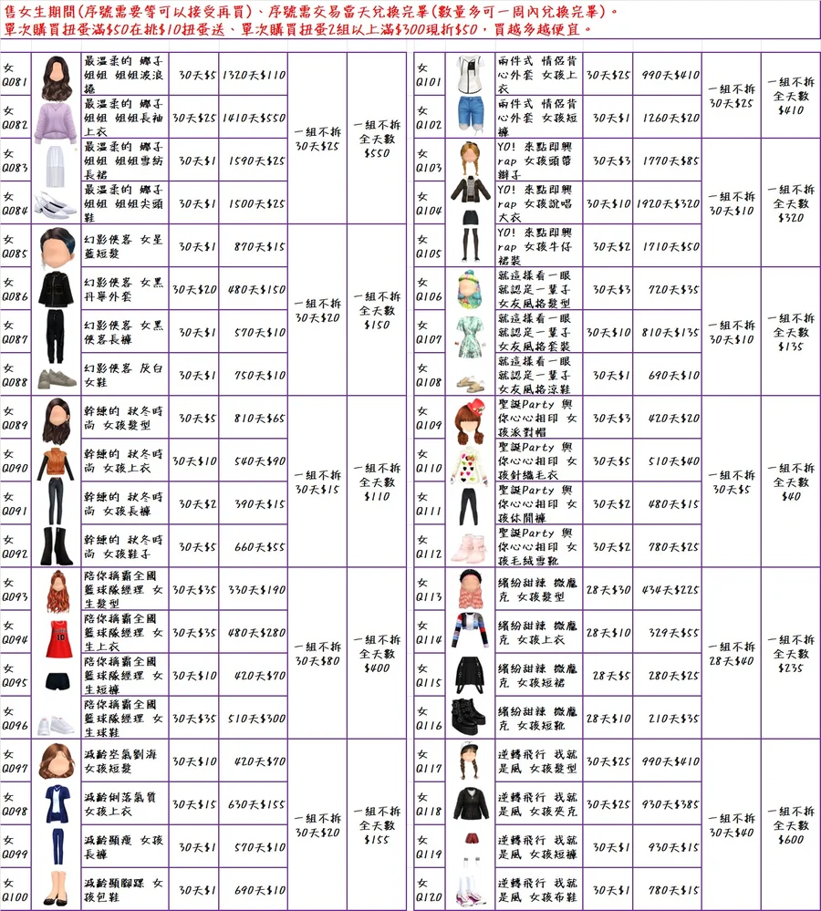 女Q398 明星的日常 露露女孩套裝 28天$10 175天$30