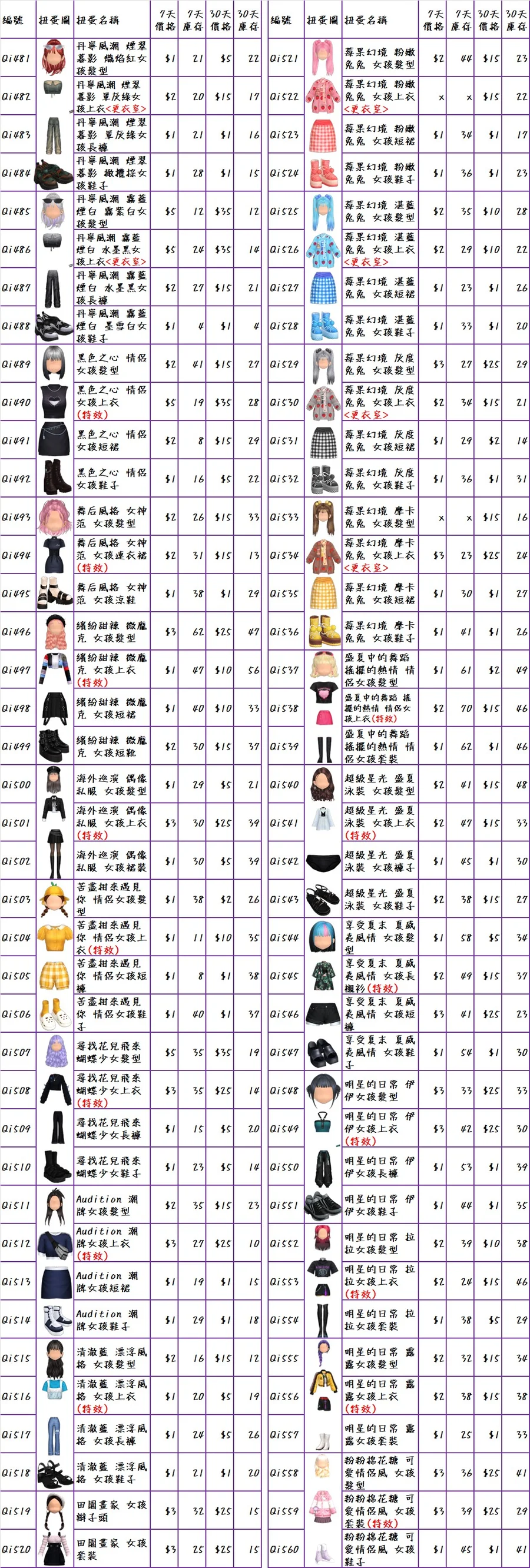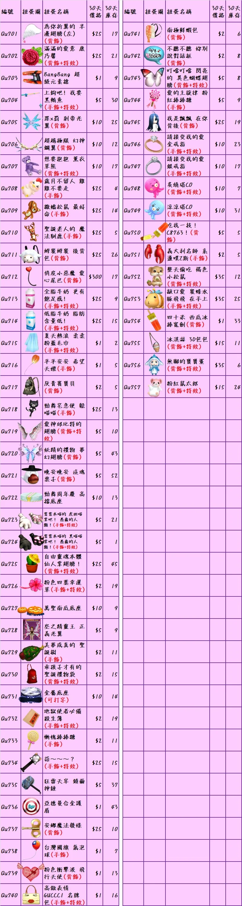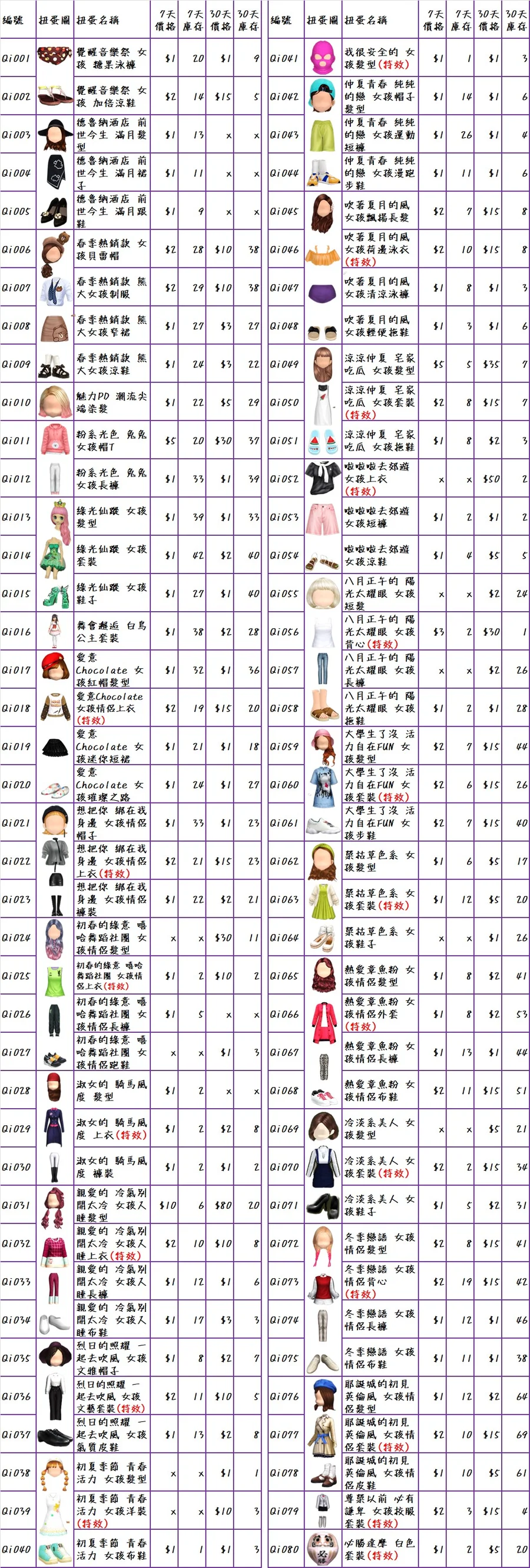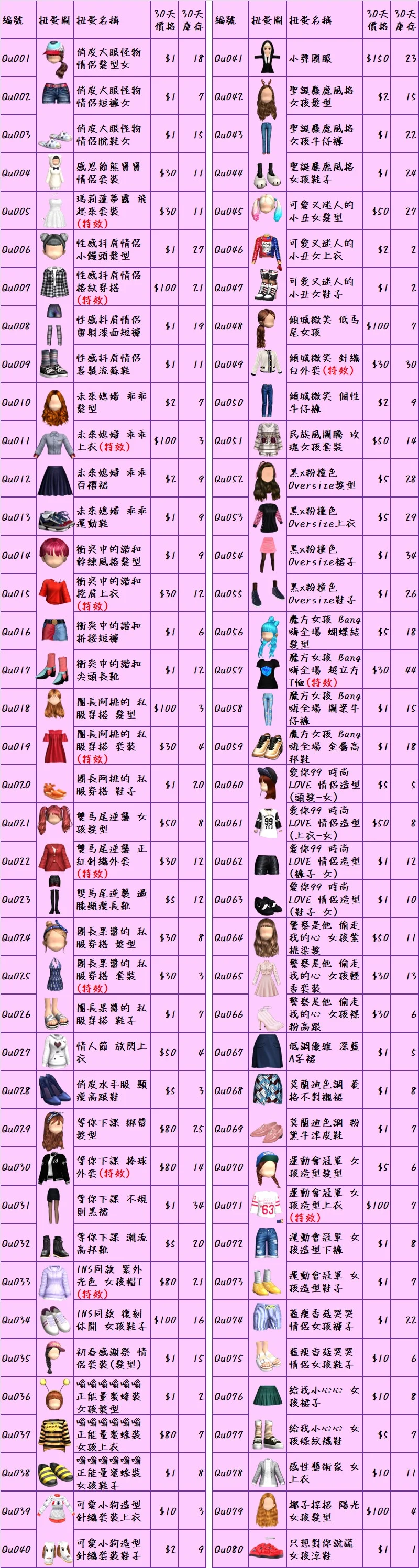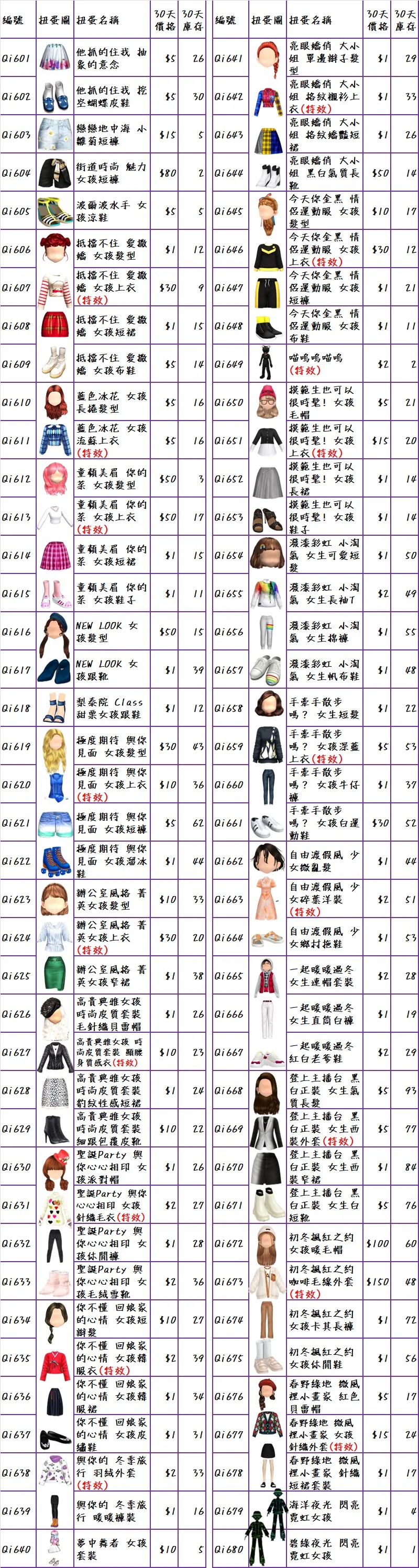♥隨機期間C禮包$100(普扭7天or30天:隨機的頭x5個、衣x5個、褲x5個、鞋x5個、飾品x5個、臉型x5個)♥