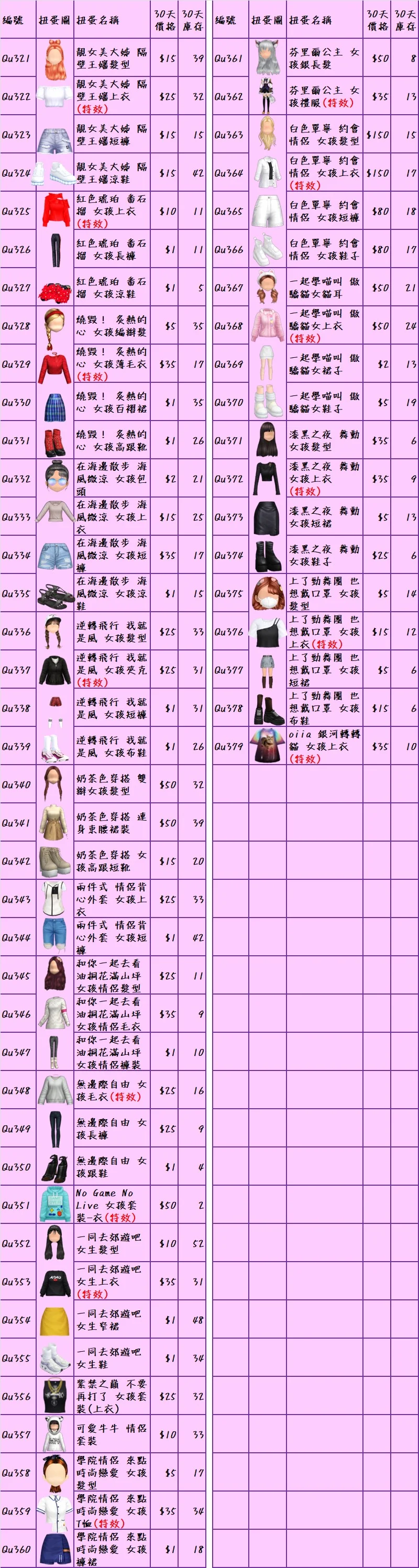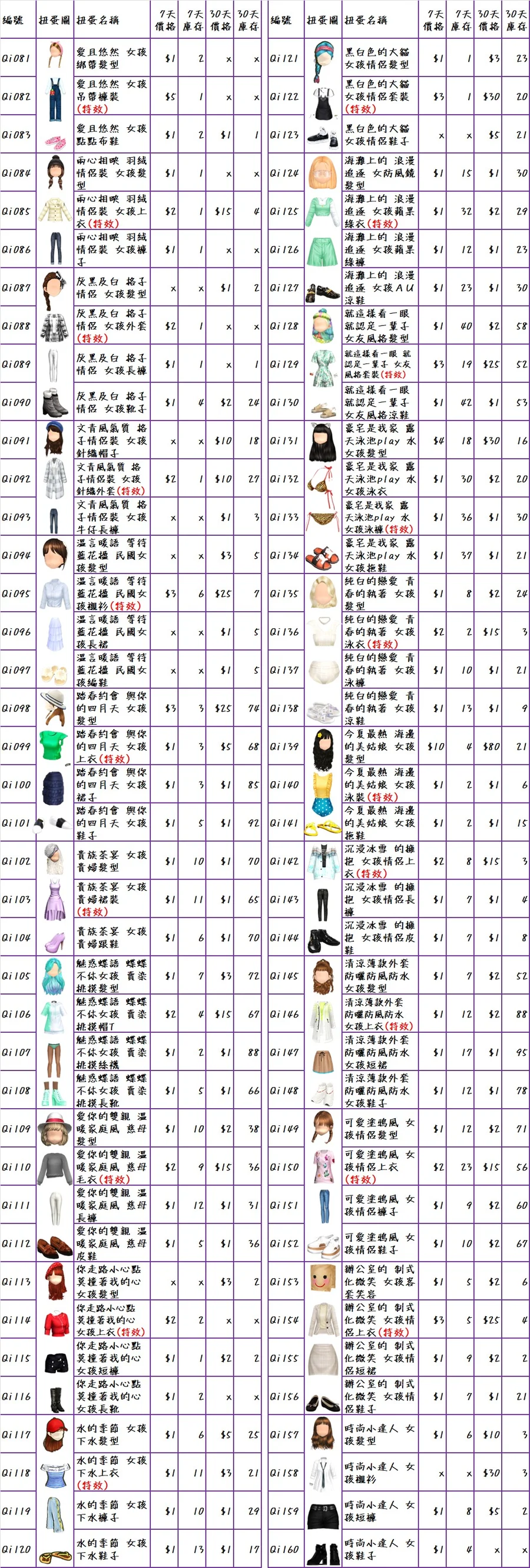 ★★需要請私訊或留言正確名稱(包含男生或女生的)及數量★★