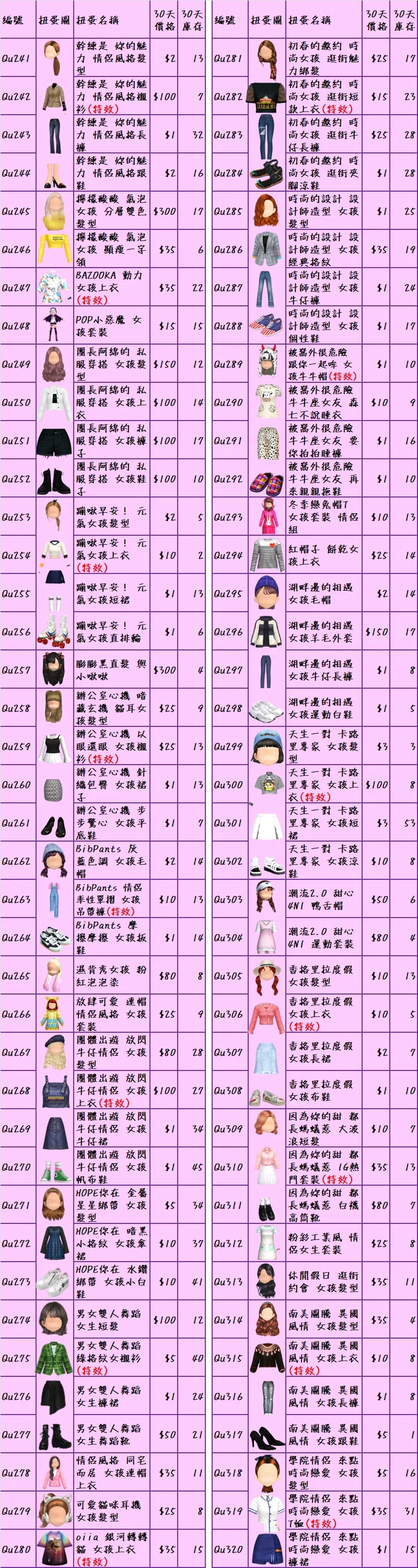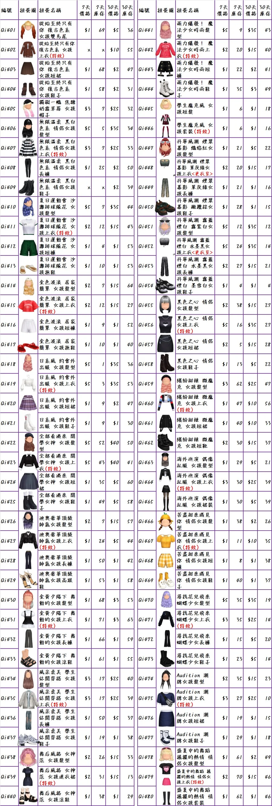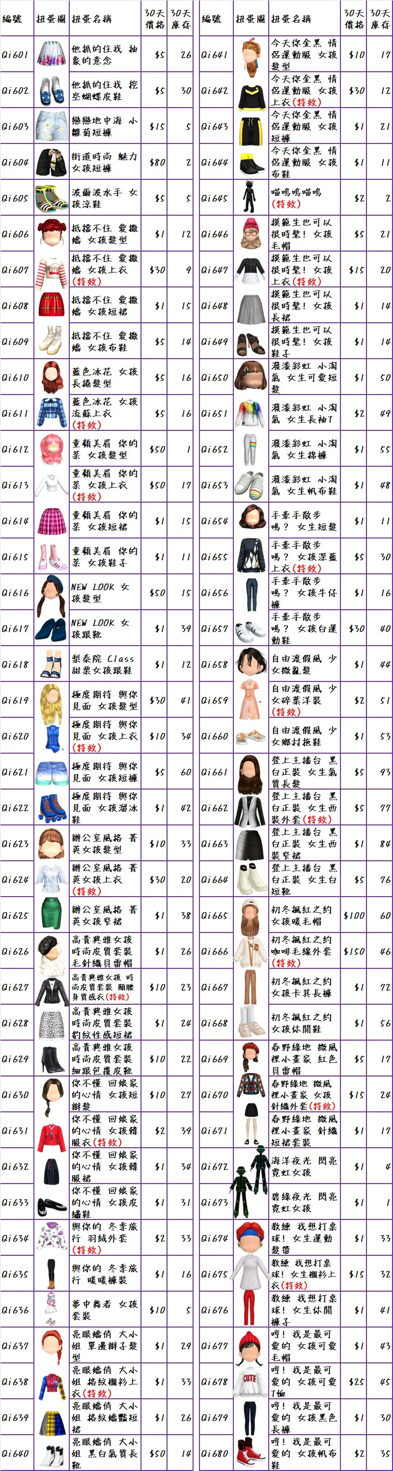♥隨機期間B禮包$300(普扭7天:隨機的頭x40個、衣x40個、褲x40個、鞋x40個、飾品x40個、臉型x40個)♥