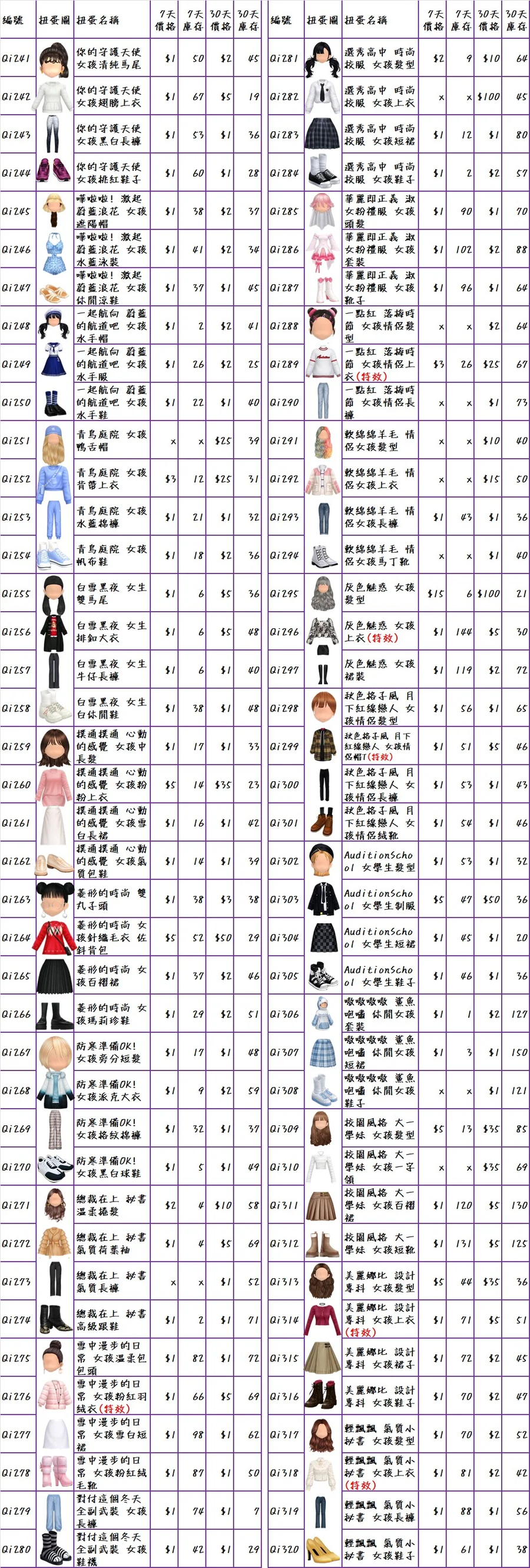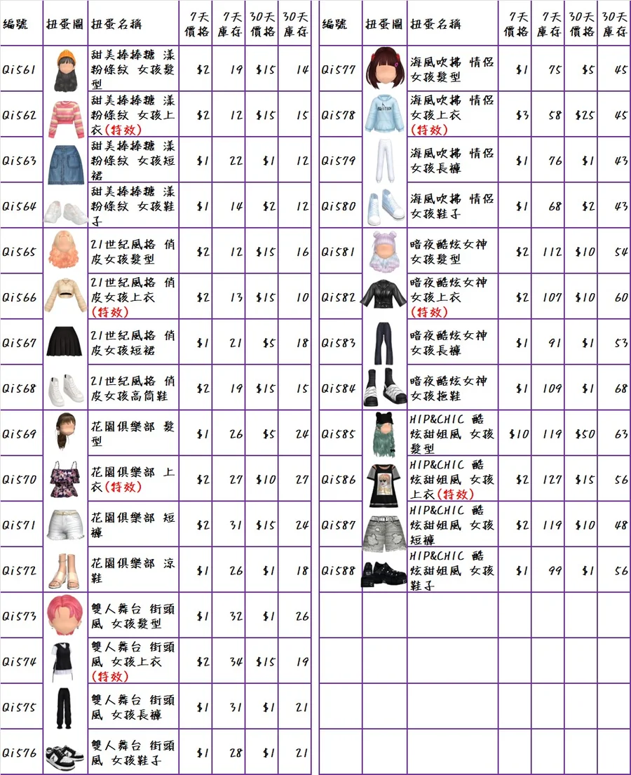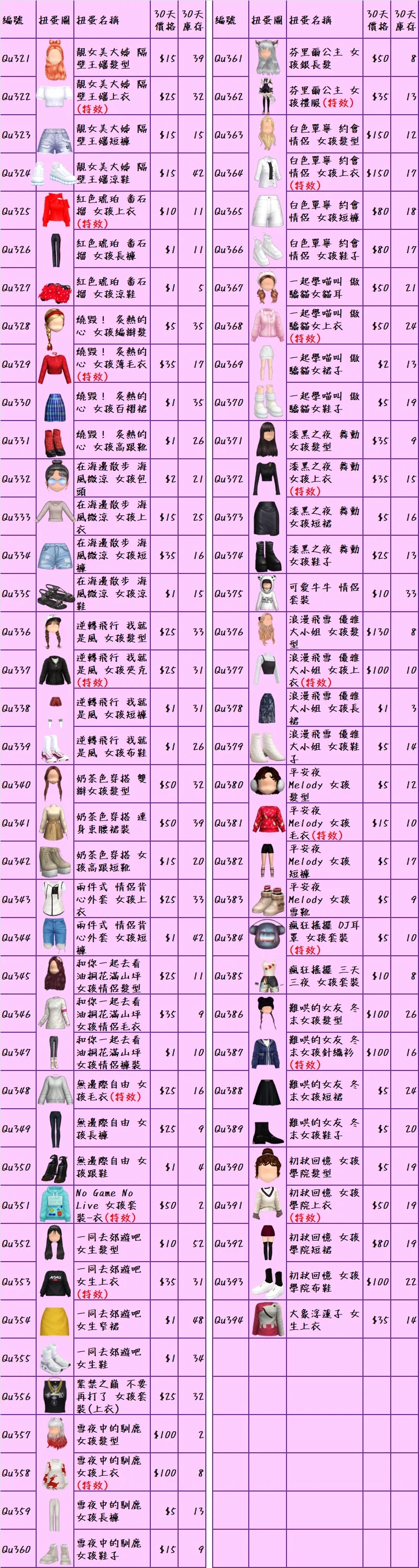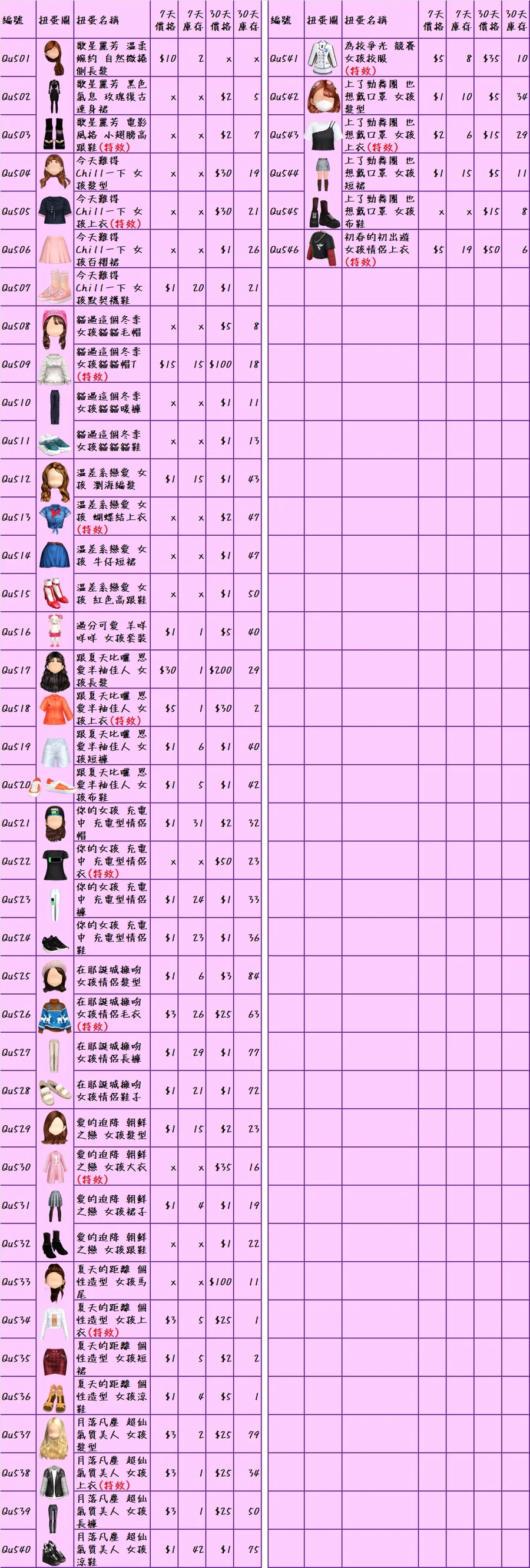 ♥隨機期間B禮包$300(普扭7天:隨機的頭x40個、衣x40個、褲x40個、鞋x40個、飾品x40個、臉型x40個)♥