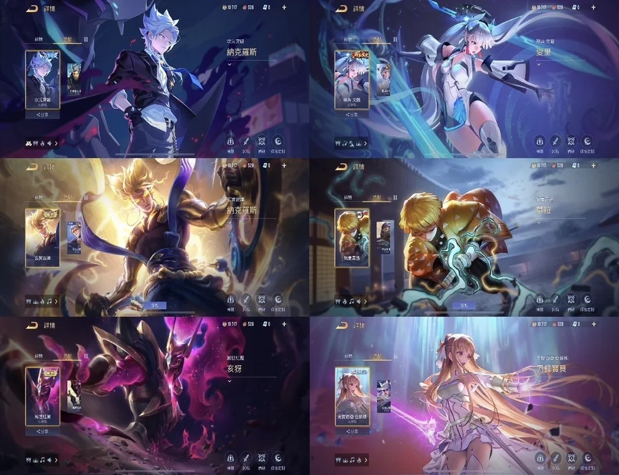 勝率佳!!全英雄近四百造型!共123英雄394造型!勝率54%!!共1次S戰場傳說印記!!常用奧義皆已齊全!!多課金抽獎造型!