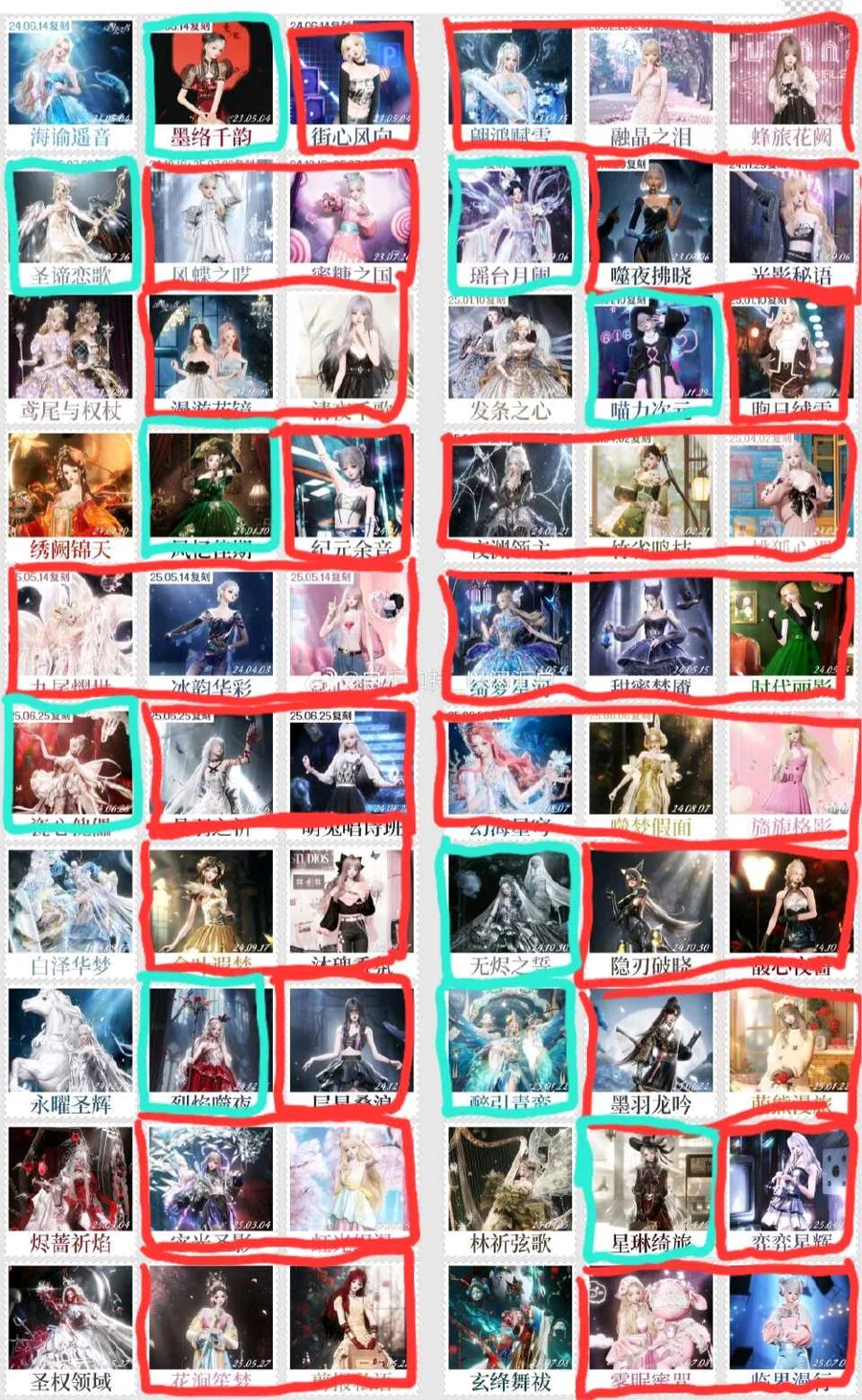 如圖(紅色抽齊/綠色有裙或上下裝)