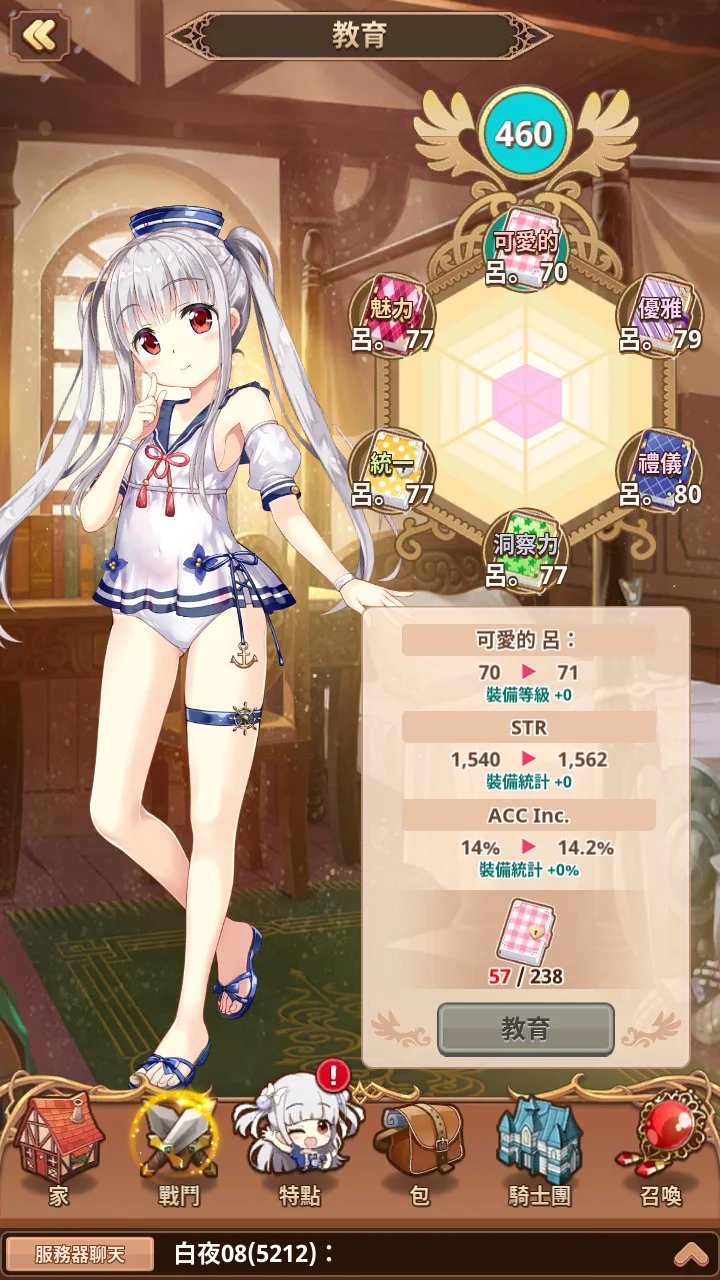 女兒教育460等,衣服目前7件(一般6件,泳裝1件)