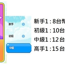 新手1 : 8 ,初級 1 : 10、中級 1 : 12