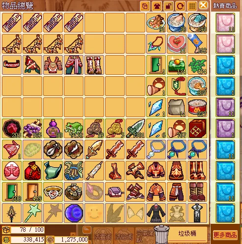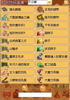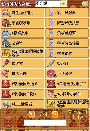 物倉 / 大包裹 / 物品籃 內容物 如圖