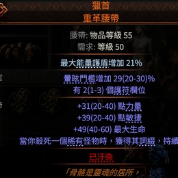【護甲、重革腰帶、獵首】額外21%能量護盾