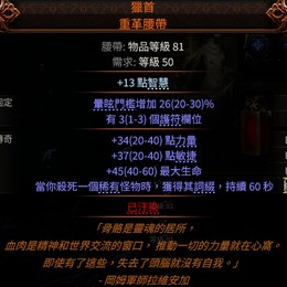 【護甲、重革腰帶、獵首】額外13智慧