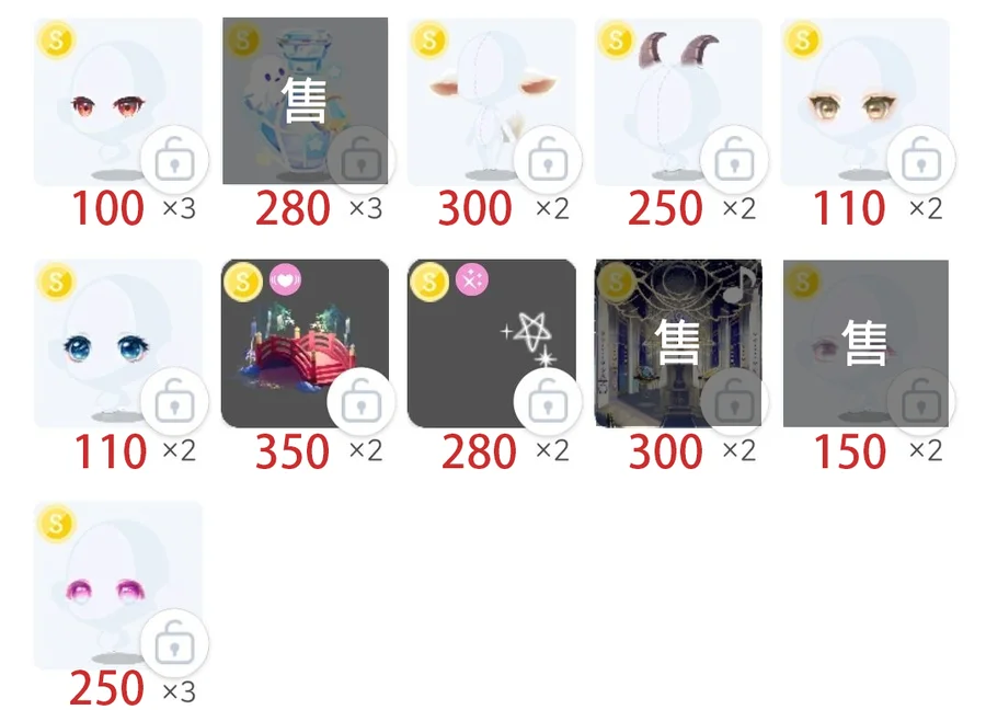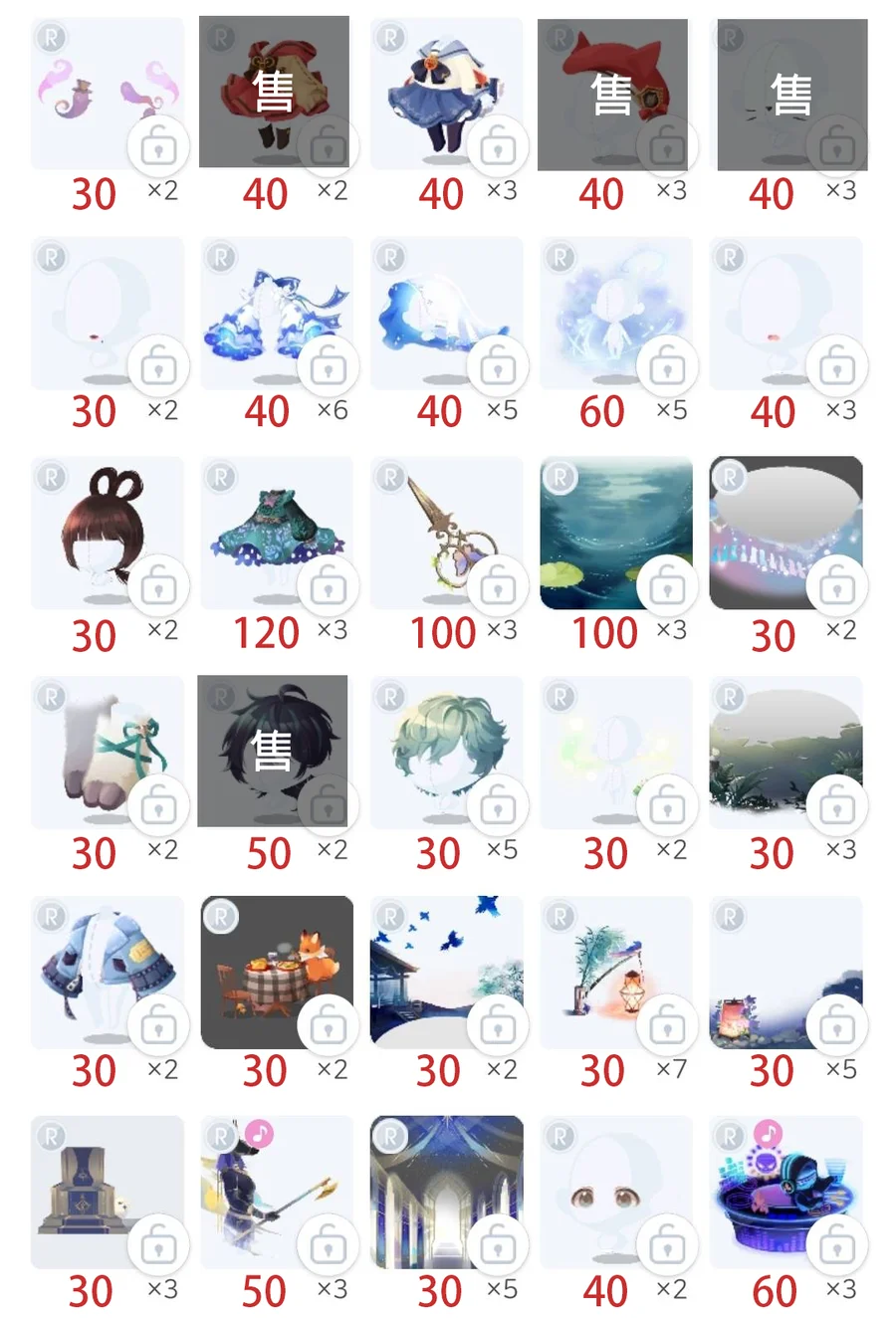 棄坑售出重複的S物與R物,全部道具已標價,皆為不實收,實際物品價格如同圖片所示。