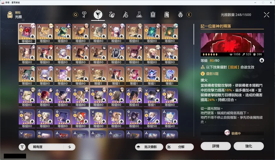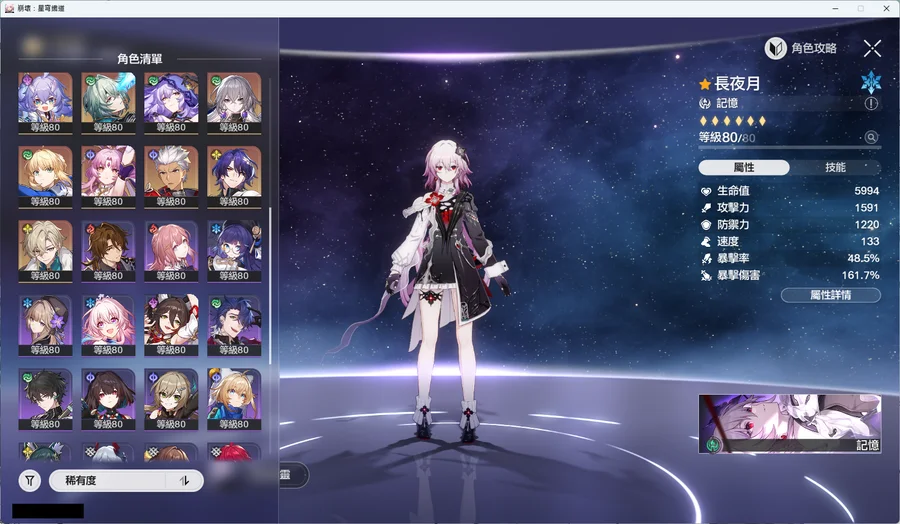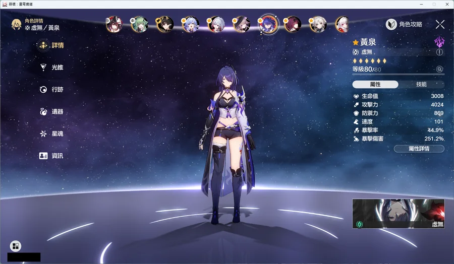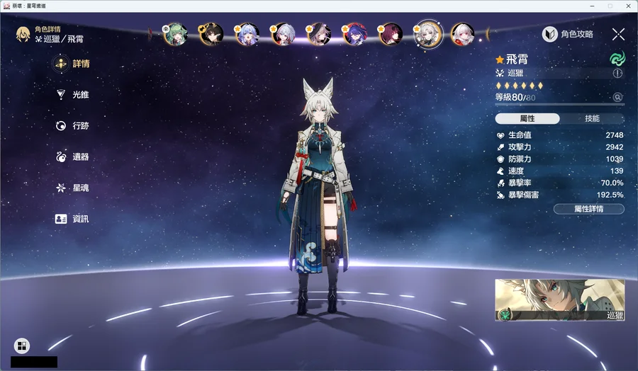 飛霄2+1黑塔2+1砂金2+1知更鳥2+1托帕2+1長夜月2+1黃泉2+1花火0+1藿藿0+1丹恆 騰荒0+0卡芙卡0+1阮 梅0+1那刻夏0+1黑天鵝0+1Saber 0+1符玄0+0Archer 0+1真理醫生0+1
