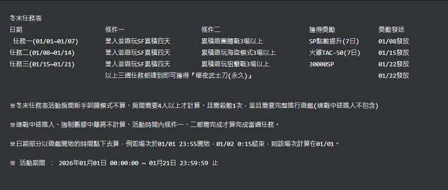 跑殺都可問~1月冬末任務表 極夜武士刀