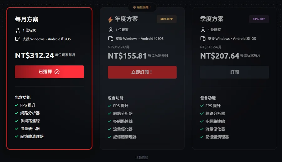 第一個月代碼僅出售一次,第二個月若要訂閱請購買第二個月的套餐
