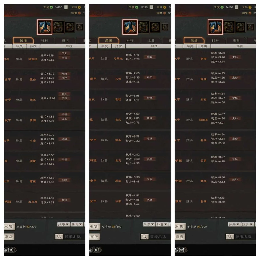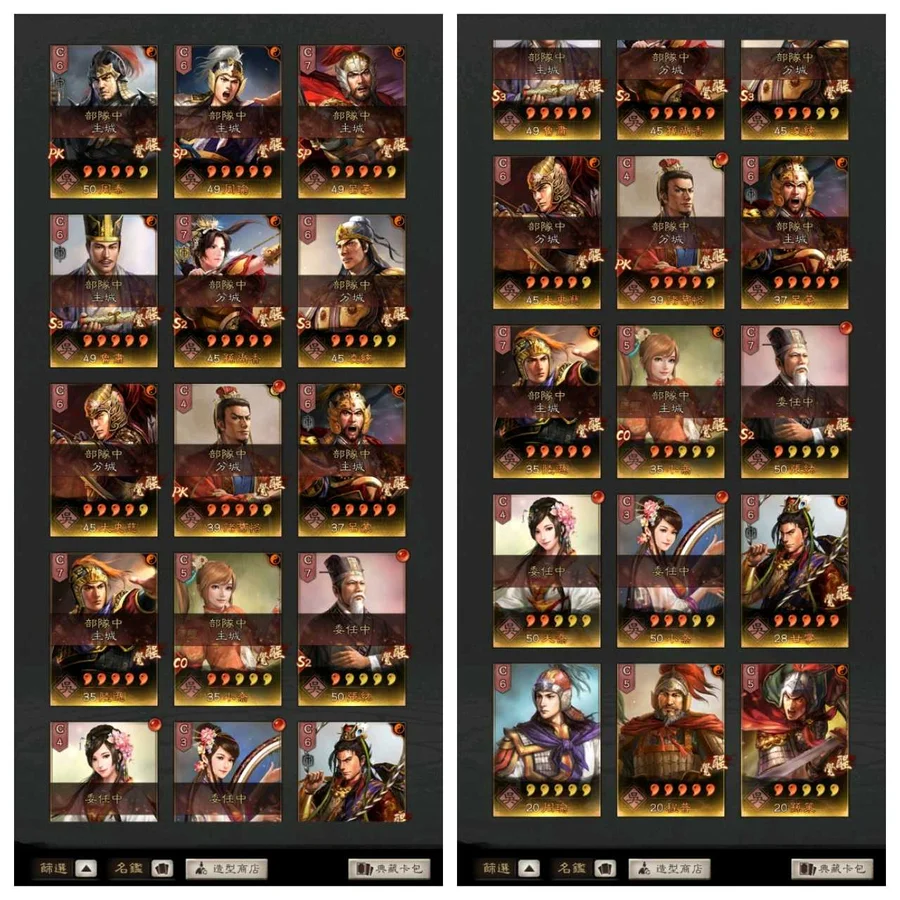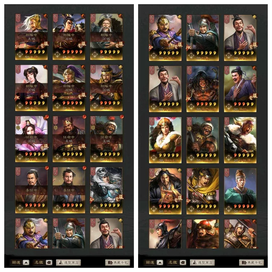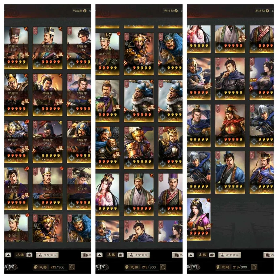 武將參考截圖,主要隊伍:核彈張(有號令、雄烈)、姜維飛熊騎、富貴騎、荊州弓(SP周瑜、sp呂蒙、魯肅)、香香吳騎、太尉盾。 缺:sp孫堅、sp貂蟬、sp董卓、王異及四位戰法 將作府:軍事100 考工殘卷:13,將作殘卷:12已換吉運 裝備:雄烈、昭烈、武聖、膽略、天公、號令、5妖氣、6靈動、扶危、2出奇、衝陣、5踩踏、張飛專馬、2暴躁、2好學、長健、巾幗女衣 戰法:缺勠力同心、眾動萬計、梳妝擲戢 2卡框、回溯玉牌、萬能武將卡