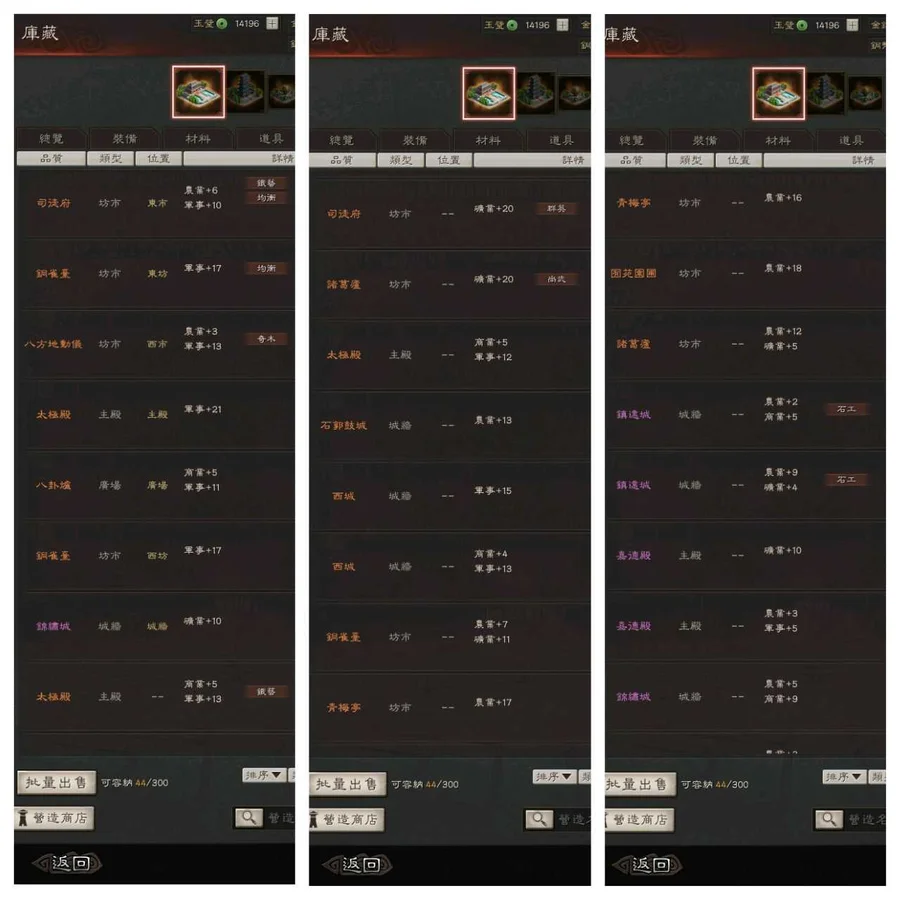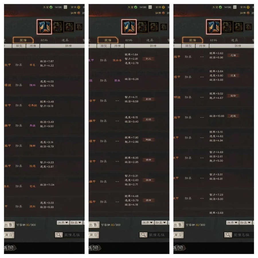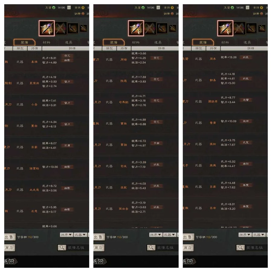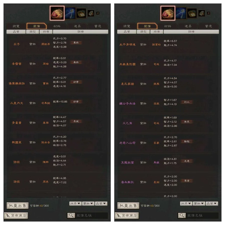武將參考截圖,主要隊伍:核彈張(有號令、雄烈)、姜維飛熊騎、富貴騎、荊州弓(SP周瑜、sp呂蒙、魯肅)、香香吳騎、太尉盾。 缺:sp孫堅、sp貂蟬、sp董卓、王異及四位戰法 將作府:軍事100 考工殘卷:13,將作殘卷:12已換吉運 裝備:雄烈、昭烈、武聖、膽略、天公、號令、5妖氣、6靈動、扶危、2出奇、衝陣、5踩踏、張飛專馬、2暴躁、2好學、長健、巾幗女衣 戰法:缺勠力同心、眾動萬計、梳妝擲戢 2卡框、回溯玉牌、萬能武將卡