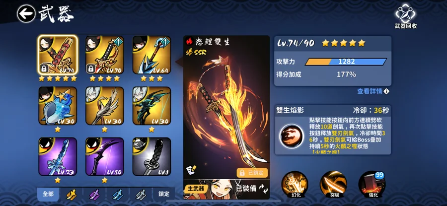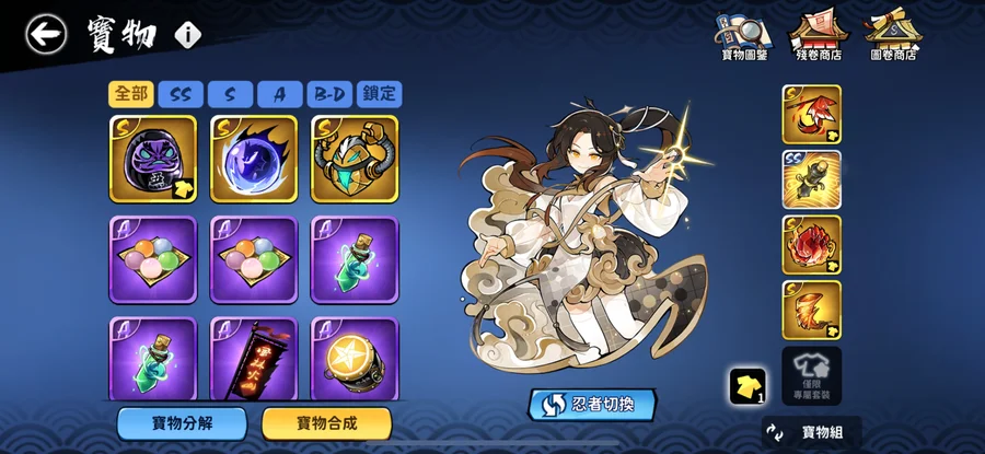 衛鯉2+1其餘看圖主線打到第八章還剩21030勾玉16張限定祈福券35限定武器鑰匙 有買永久月卡