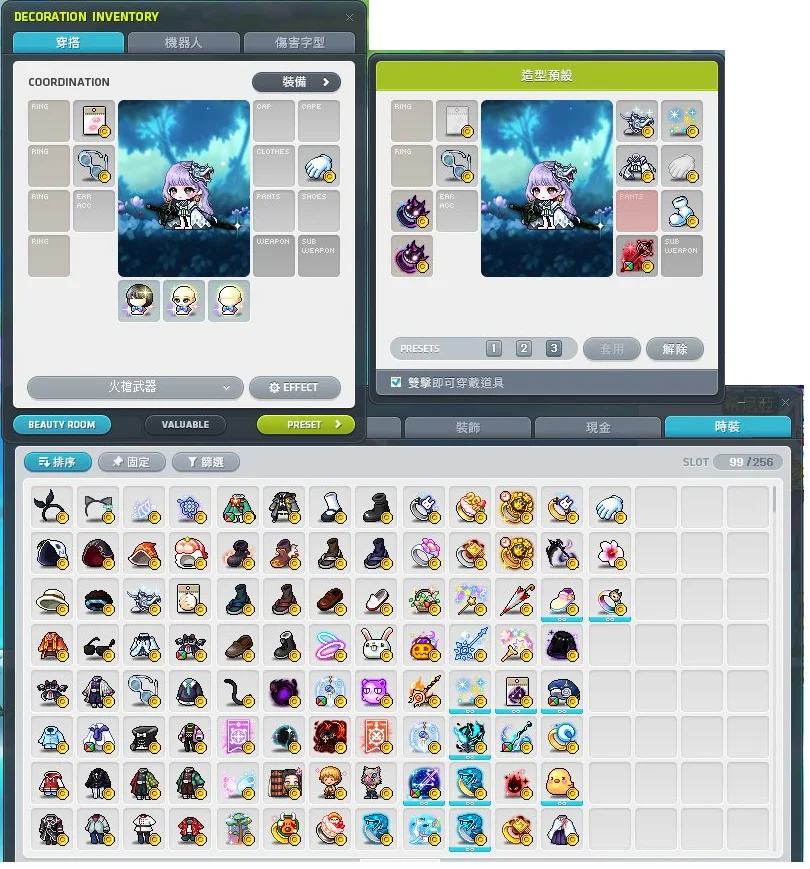 身上還有不少時裝 值錢的算一算大概也價值7~8000T上下