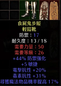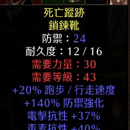 有圖直接看,喜歡就下標,打寶有保障,掉寶有保佑下標前請務必小窗詢問人在與否,不要白等趕快去暗黑的世界裡打您的寶 QQ1、20%跑 37%電抗 40%毒抗 46%金幣 7MF = 200T2、5敏 20%電抗 31%毒抗 17MF = 100T3、30%跑 10%擊恢 36%冰抗 33%電抗 8MF = 300T4、30%跑 33%冰抗 20%毒抗 25MF = 200T