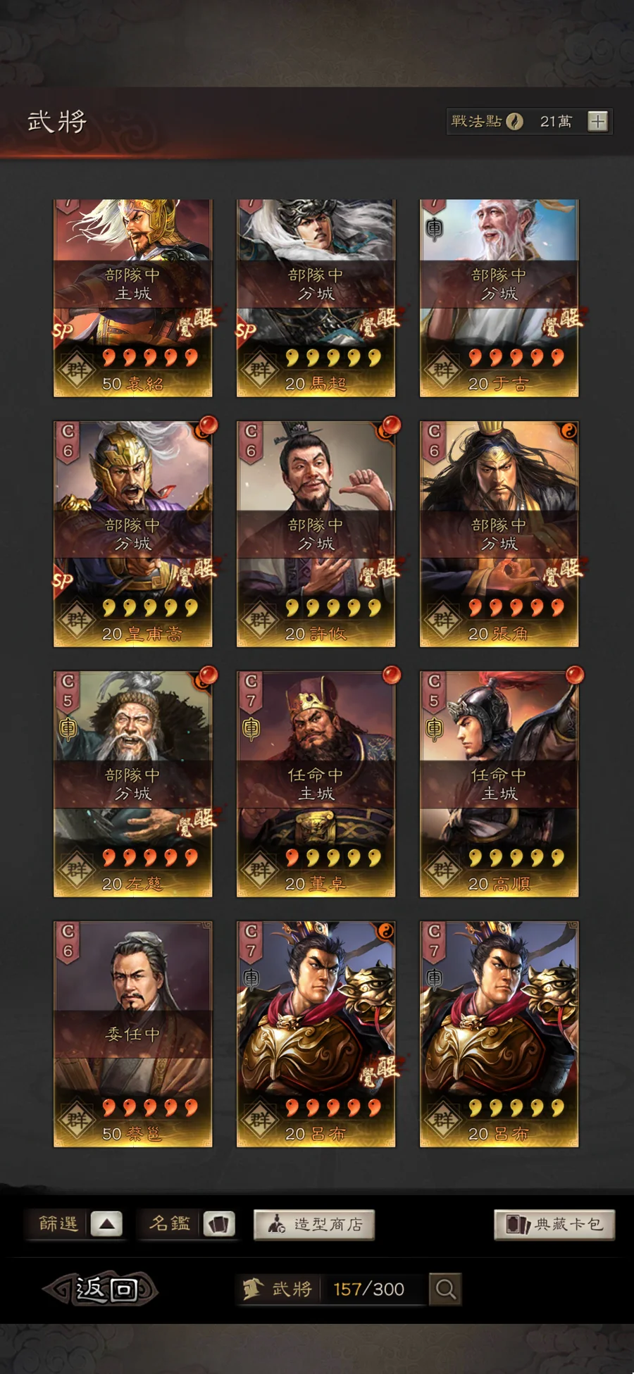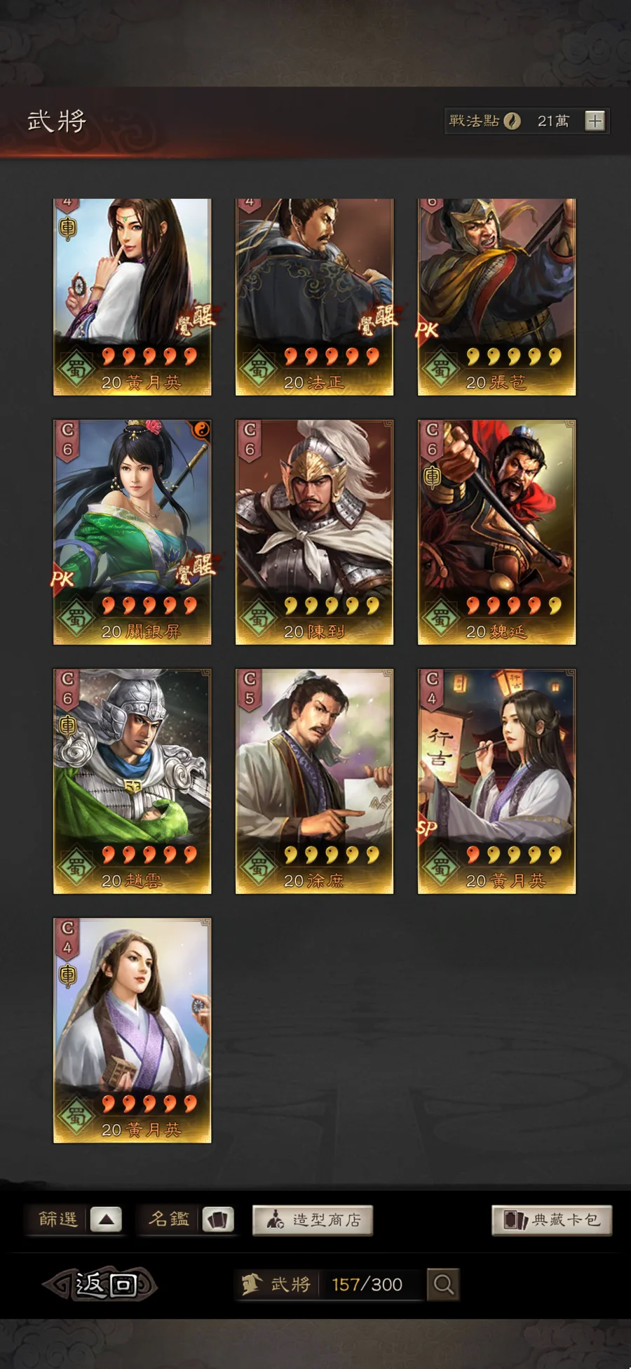 出奇 x2,嘶風 x1,雄姿 x1,扶危 x1