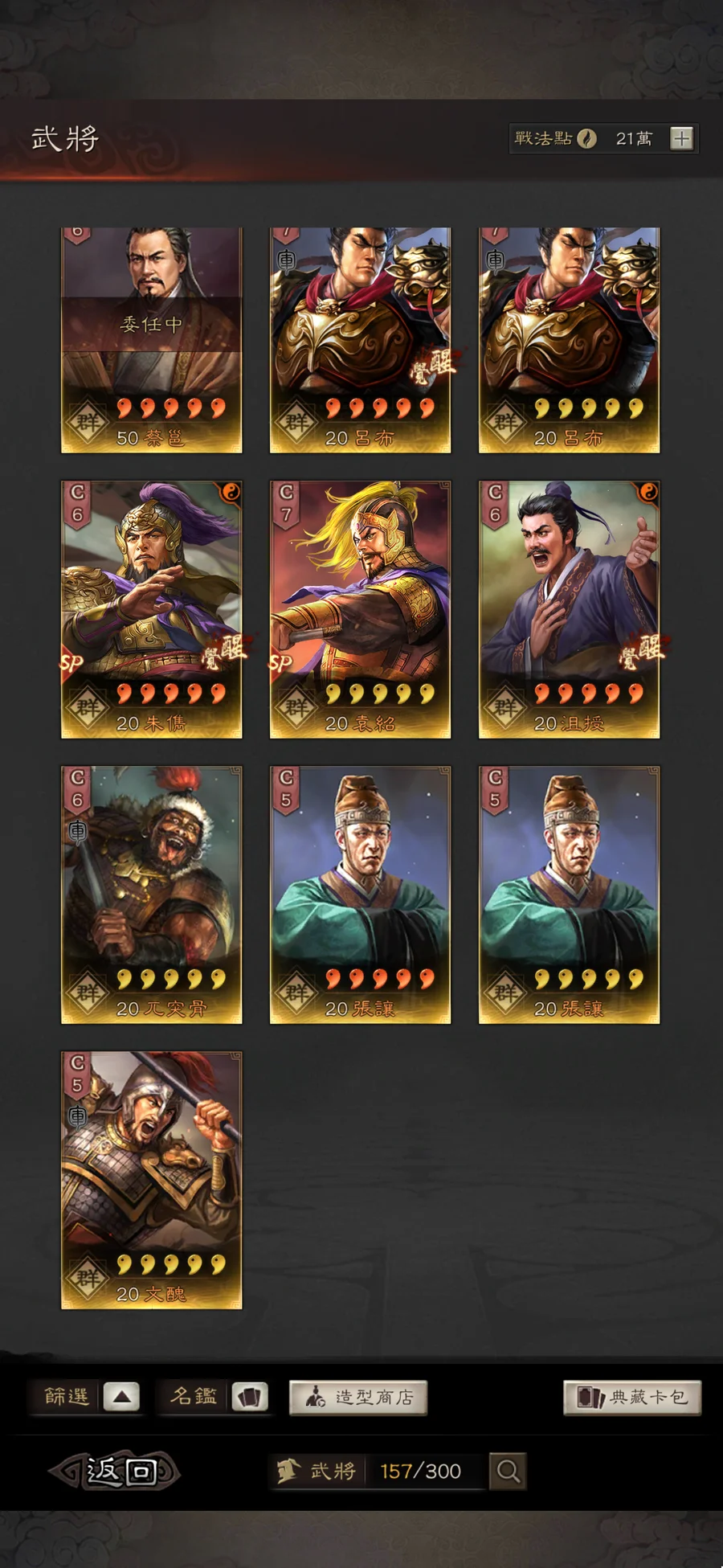 昭烈 x1,妖氣 x1,無雙 x1,天公 x1