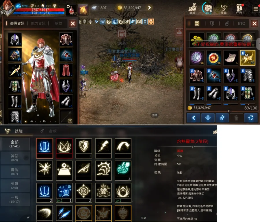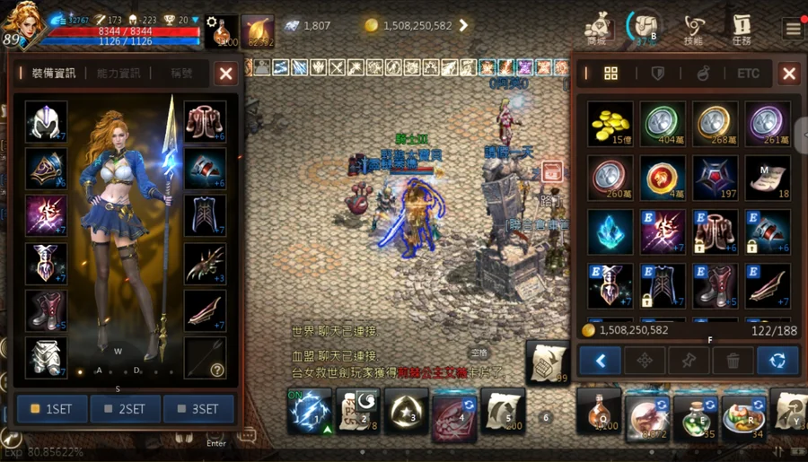 74小號身上一套紅騎士經驗裝+紅矛 衝小號必備