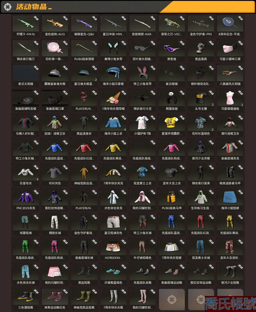 【JDJOEGX107742】生存等級277;成長型武器1;槍皮87;載具17;成長型武器:LV9爆裂彈球-AUG;傳說武器:暗影纏身-AKM,爆裂彈球-AUG;傳說時裝:獵人的連身衣,PNC2025戰術科技上衣,緊身連衣裙灰色,精緻鞋與絲襪黑色;載具:鄉村巴士迷你巴士,公路戰士恣馬,恐龍樂園達西亞轎車,雙龍會摩托車,小兔快遞配送員小型摩托車,鏽色反叛者摩托車,鼓舞伴我行山地腳踏車,律動甜甜圈雙人越野車,彩虹四溢達西亞轎車,碰撞測試皮卡車,絕塵時刻庫佩RB,親吻太陽烏阿斯吉普車,魔力甜心薩莉兩棲裝甲車,煉獄之角雙人越野車,計程車達西亞轎車,為你瘋狂庫佩RB,界限粉碎者恣馬;史詩武器:不朽遊行-MK47MUTANT,湮滅-BERYLM762,破碎元素-MINI14,PNC2025戰術科技-SKS,週六攪局者-MK12,G-DRAG0N-M24,金色落葉-KAR98K,PNC2025戰術科技-MP5K,一擊撕裂者-S1897,碎瓜者-平底鍋,翡翠色煙霧彈;史詩時裝:釉彩甜甜圈面具,月光遊牧者耳環,狂野姿態耳環,日光下澈墨鏡,PNC2025戰術科技護目鏡,九尾狐面具,般若面具,豹子精漁夫帽,豹子精面具,冬季拉拉隊皮草帽,雪片馬甲,皇室摔手上衣,蓄勢待發旗袍,沙漠騙徒上衣,甜甜圈上衣,釉彩甜甜圈襯衫,暴躁花生連帽衛衣,月光遊牧者上衣,絲滑夏日上衣橄欖綠,絲滑夏日上衣白色,日光下澈熱帶上衣,日光下澈叢林上衣,九尾狐服飾,般若服飾,黃銅鳥嘴醫生夾克,小隊隊長連衣裙,冬季拉拉隊上衣,禁忌閃光夾克,日光下澈熱帶短褲,日光下澈叢林短褲,PNC2025戰術科技長褲,PGC2022戰術科技長褲,PNC2023強襲者短褲,狂野姿態拖鞋,粉鯊寶寶睡拖,日光下澈涼鞋,PNC2025戰術科技運動鞋,般若足具,冰雪女王長靴;手套:獵人的手套,狂野姿態手鐲套組,絲滑夏日上衣橄欖綠,絲滑夏日上衣白色,漫步沙灘手環,般若手套,緋紅新星的手套,星際小兔手套,小兔學院生化服手套,釉彩甜甜圈手套,都市耀光戒指,隊長的迷彩手套,ELPOZO狂雞隊吉祥物玩偶服,北極熊連身衣,麻辣小龍蝦玩偶服,豹子精手飾,哥特戒指,小隊隊長手套,冬季拉拉隊美甲,RASH悲喜和我結婚吧手套,秋日生存者手套,黑血手套,藍色閃電手套,霓虹紋飾手套,銀河少女洋裙,搓澡工手套,準備就緒手套,神秘危險品手套,7週年快樂手套,錦衣夜行裝束,熊貓手套,甜甜圈手套,潛水大師連身衣;精英武器:地獄火-M416,糖霜樂園-M416,金色落葉-MK47MUTANT,魔力寶貝-M16A4,分形幾何-QBZ,G-DRAGON-SCAR-L,熾熱沙漠-MK47MUTANT,嗜血者-AUG,蔚藍魔法爆裂者-G36C,無拘來世-K2,追星者-ACE32,鍍金-GROZA,賽季37競技黃金-MK14,魔力寶貝-SLR,致命快遞-德拉貢諾夫,熾熱沙漠-VSS,彩虹之上-SLR,不朽遊行-WIN94,禮物環繞-KAR98K,鮮花之力-AWM,無拘來世-莫辛納甘步槍,豬八戒-AWM,魔女之力-VECTOR,精工美術-湯姆遜衝鋒槍,彩虹之上-UMP,競速之道-P90,熔岩燈-JS9,無拘來世-DP-28,聖誕之力-P18C,馬桶塞;精英時裝:暗夜獵手皮革帽,瘋狂護士帽,PNC2024高爾夫球帽,都市女牛仔帽,飛行員太陽鏡琥珀色,星魂虎耀星輝面具,甜甜圈遮陽帽,暴躁花生針織帽,暴躁花生墨鏡,黑暗兔兔面具,都市耀光墨鏡,隊長的迷彩鴨舌帽,隊長的迷彩面巾,恐龍樂園艾利克斯頭套,ELPOZO狂雞隊吉祥物頭套,北極熊頭套,麻辣小龍蝦頭套,紅鼻子馴馬頭套,黃銅鳥嘴醫生面具,朱莉的帽子,猩紅獵手面具,薄荷巧克力假髮,兔兔也朋克髮箍,時尚朋克上衣,狂野姿態上衣,OGBG紋身袖套,漫步沙灘連衣裙藍色,漫步沙灘連衣裙棕色,月之影背心,甜蜜夢境制服,鐵娘子緊身衣,ELPOZO狂雞隊吉祥物玩偶服,北極熊連身衣,麻辣小龍蝦玩偶服,豹子精上衣,節奏守護者T恤,薄荷巧克力洋裙,小小雞仔T恤,蜘蛛紋身袖套,RASH悲喜堅韌不拔夾克,瘋狂科學大衣,星魂虎耀星輝瑜伽上衣,芳心女獵手皮夾克,月光遊牧者夾克,都市耀光夾克,豹子精夾克,小小雞仔外套,海洋獨行俠長褲,星魂虎耀星輝工裝褲,甜甜圈短褲,釉彩甜甜圈運動褲,暴躁花生長褲,月光遊牧者短裙,狂野姿態褪色牛仔褲,絲滑夏日短褲橄欖綠,絲滑夏日短褲白色,豹子精短褲,黃銅鳥嘴醫生褲,冬季拉拉隊短褲,節奏守護者長褲,小小雞仔短褲,RASH悲喜堅韌不拔工裝褲,卡通襲擊者步鞋,PGC2023帝皇的防風靴,棕櫚葉復古腳蹼,甜甜圈運動鞋,釉彩甜甜圈運動鞋,月光遊牧者短靴,絲滑夏日涼鞋,漫步沙灘涼鞋,甜蜜夢境長靴,北極熊腳套,九尾狐短靴,豹子精便鞋,黃銅鳥嘴醫生靴,小隊隊長運動鞋,冬季拉拉隊皮草短靴,節奏守護者皮鞋,朋克公主高跟鞋;其他物品:青年謝爾蓋,狂人馬爾霍特拉,朱莉斯科爾斯,髮型88,PNC2025之舞-街舞男孩群體表情,PNC2025L0G02噴漆,龍年大吉噴漆,男性面容9,女性面容7,髮型93,髮型91,髮型87,髮型56,髮型85,髮型83,髮型81,髮型43,漫步沙灘妝容,比賽日妝容,aespa-DARKARTS第2部分群體表情,勝利之舞146群體表情,天使與惡魔噴漆,甜甜圈之家噴漆,太陽之子噴漆,要浪花,不要戰爭噴漆,煉獄之角噴漆,無畏印記噴漆;【可排位】【無初郵】【官方截圖】生存277級可排位/9級爆裂彈球-AUG/翡翠色煙霧彈/滑雪鏡/紅面具/星魂白運動/悲喜跟我結婚吧禮包/白熊鞋/紅鞋