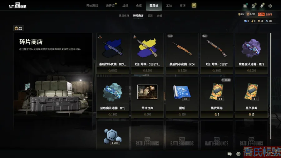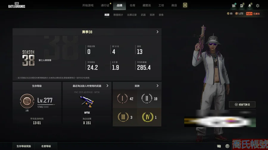 生存等級277;成長型武器1;槍皮87;載具17;成長型武器:LV9