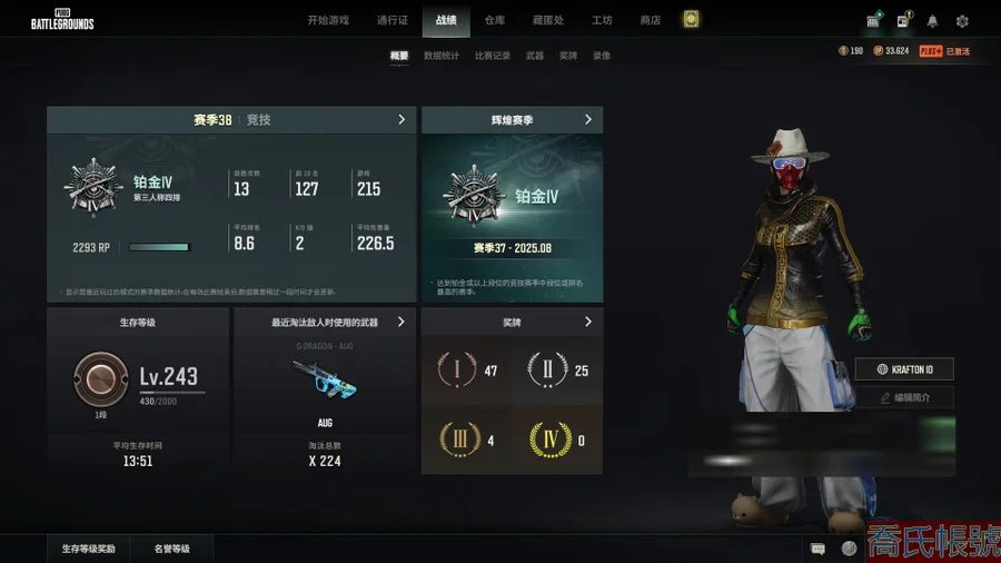 【JDJOEGX742842】生存等級243;成長型武器1;槍皮20;載具1;成長型武器:LV4G-DRAGON-AUG;傳說武器:G-DRAGON-AUG;載具:彩繪髏摩托車;史詩武器:PGC2022王牌登場BERYLM762,漫彩四溢-SKS,湮滅-M24;史詩時裝:監控人頭套,萬壽菊狂歡發帶,亡靈律動帽子,極限追逐者面具,萬壽菊狂歡連衣裙,午夜祭典上衣,PGC2022戰術科技上衣,亡靈律動夾克;手套:監控人外套,萬壽菊狂歡手套,亡靈律動手套,午夜祭典手套,PIGFF的戰術突擊手套,準備就緒手套;精英武器:淬火真金-K2,亡靈之花-SCAR-L,魔力甜心薩莉的摯友AKM,星魂的M416,亡靈之花-德拉貢諾夫,孤獨情人-MK12,魔力寶貝-SLR,PIGFF的豬豬戰術小隊德拉貢諾夫,禮物環繞-KAR98K,星魂的KAR98K,魔女之力-AWM,馬桶人-MP5K,瘋狂收割者-MP5K,星魂虎虎生威平底鍋,PIGFF的豬豬戰術小隊鐵拳火箭筒;精英時裝:午夜祭典帽子,猩紅獵手面具,星魂猛虎下山滑雪鏡,星魂虎耀星輝面具,監控人外套,GPT202517GAMING夾克,亡靈律動襯衫,GPT2025PETRICH0RROAD夾克,PIGFF的戰術突擊夾克,星魂猛虎下山運動夾克,星魂虎耀星輝瑜伽上衣,小熊覺醒長褲,亡靈律動長褲,午夜祭典短褲,星魂猛虎下山運動褲,星魂虎耀星輝工裝褲,PIGFF的戰術突擊長褲,萬壽菊狂歡長靴,滾圓形態拖鞋,亡靈律動皮鞋,午夜祭典短靴;其他物品:G-DRAGONUBERMENSCHLOGO噴漆,喬納森卡茂,女性面容22,髮型59,髮型41,髮型93,髮型29,萬壽菊狂歡妝容,亡靈律動妝容,午夜祭典妝容,公事公辦,糖骷髏噴漆,甜甜圈之家噴漆,星魂噴漆,PIGFF的豬豬戰術小隊噴漆;【可排位】【無初郵】【官方截圖】生存243級可排位/4級G-DRAGON-AUG/Pigff戰術突擊夾克/Pigff干擾揹包/星魂白運動/黑鬼/紅面具/發光手臂/星魂白運動/黑鬼