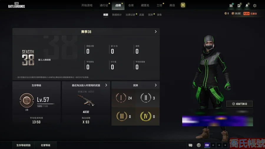 生存等級57;異色皮膚1;成長型武器2;槍皮104;載具2;異色皮膚:妖魔之觸