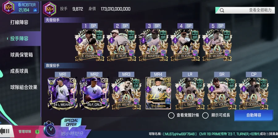 B陣容 洋基純隊,保管箱內一整組洋基球員,保管箱資源豐富,有意者可私訊詳談