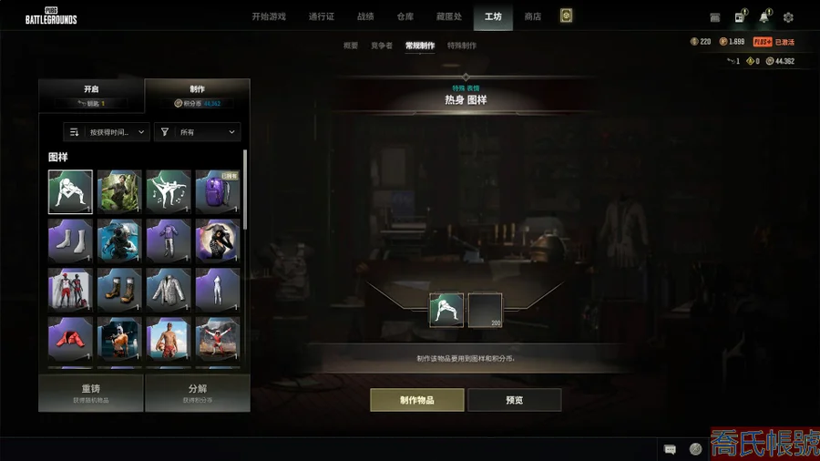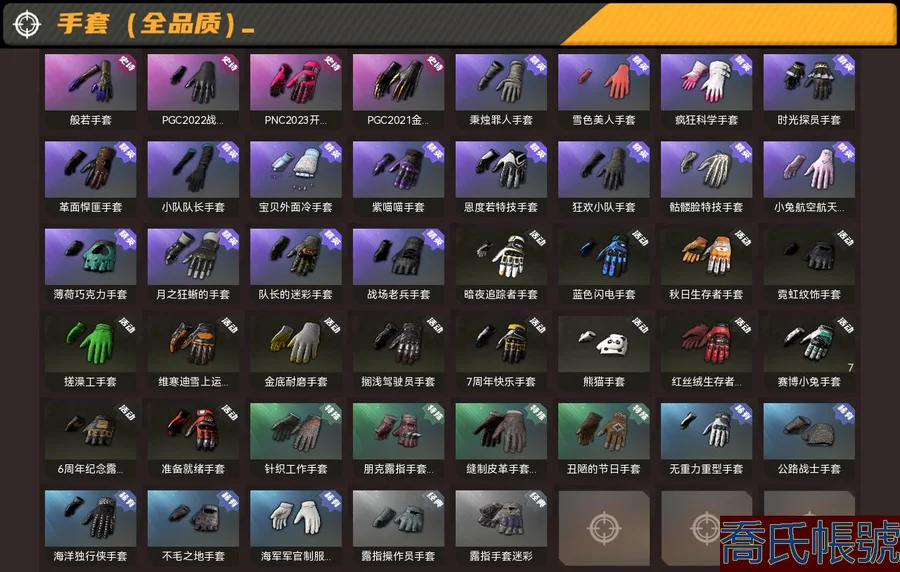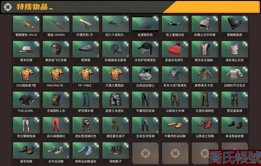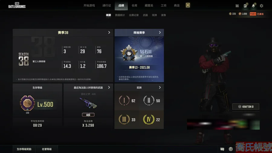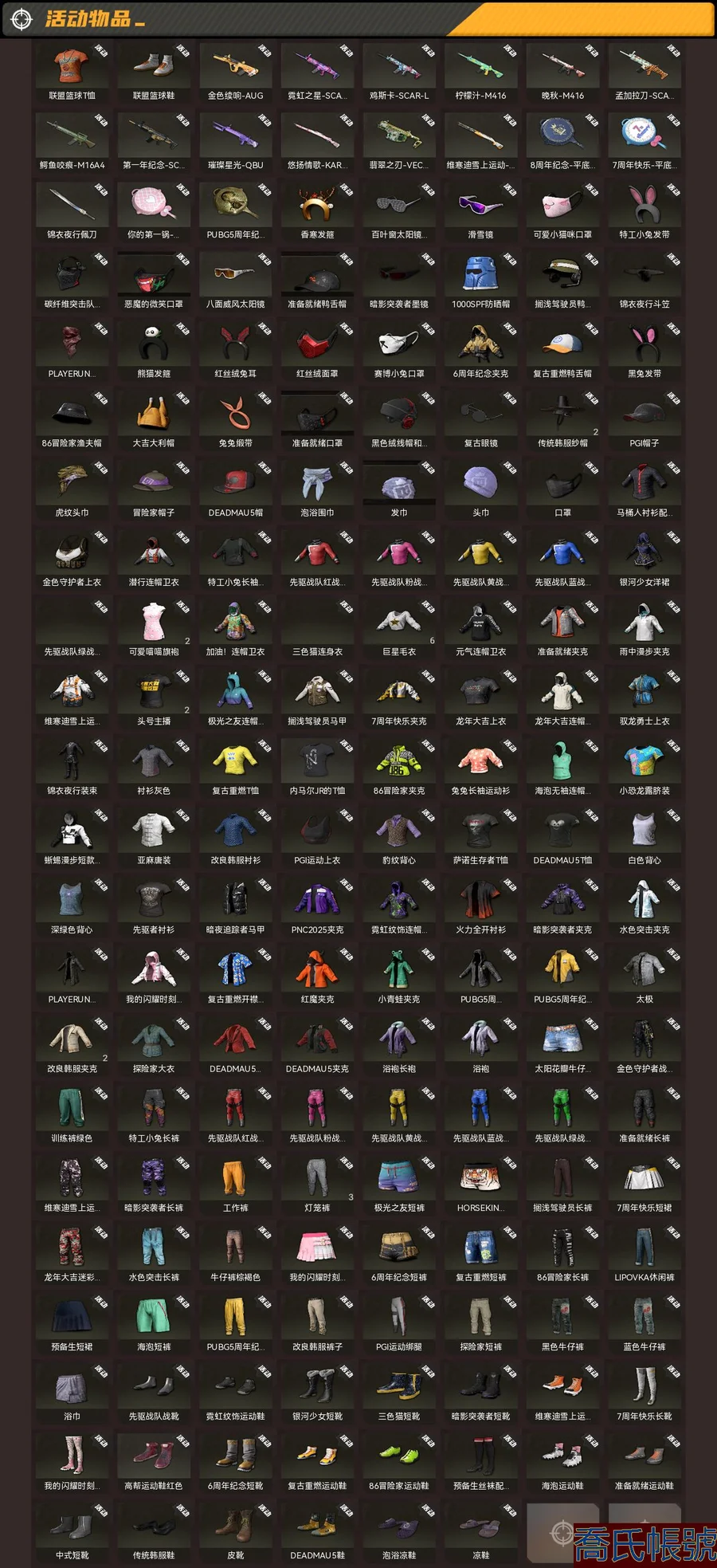 生存等級2500;異色皮膚1;成長型武器4;槍皮87;載具17;熱門物品:PG