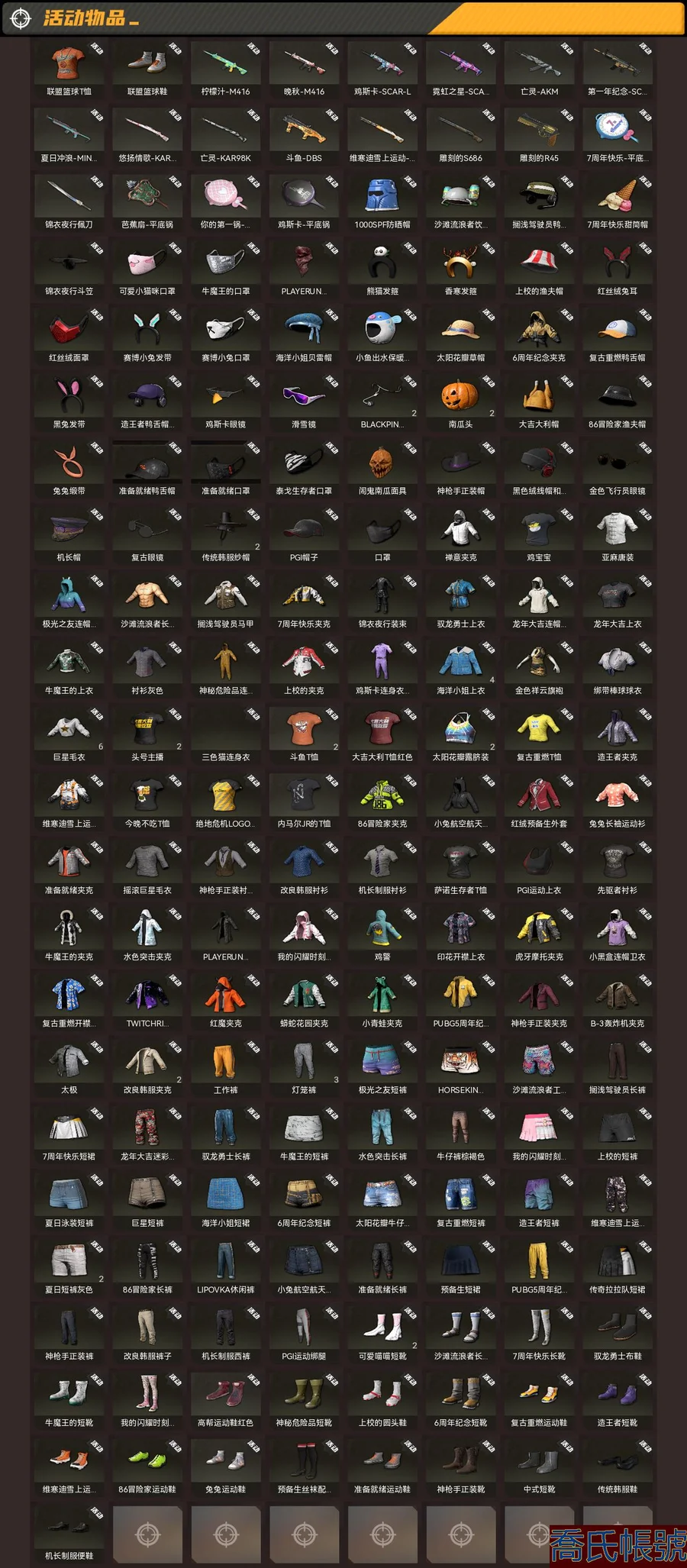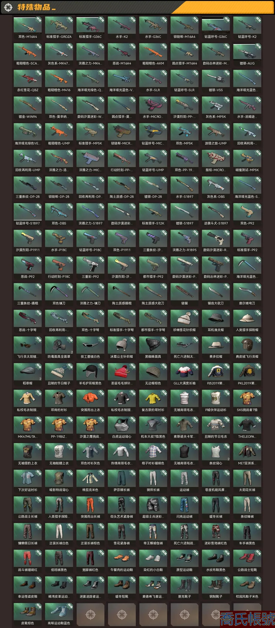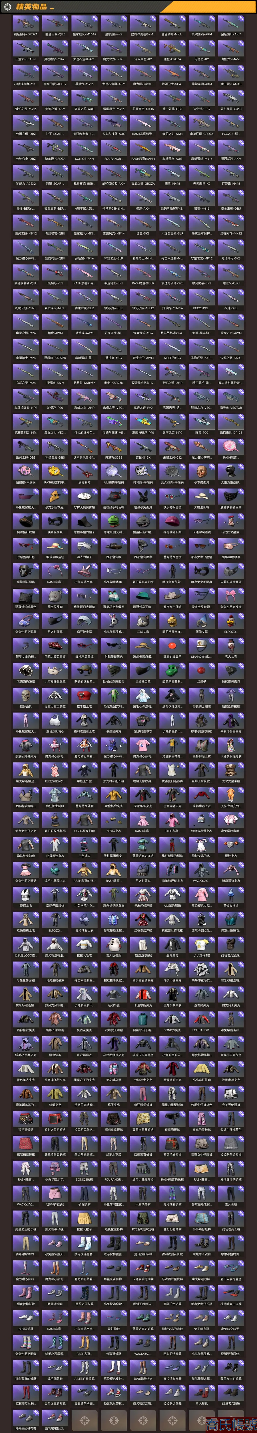 生存等級2500;異色皮膚2;成長型武器13;槍皮412;載具27;熱門物品: