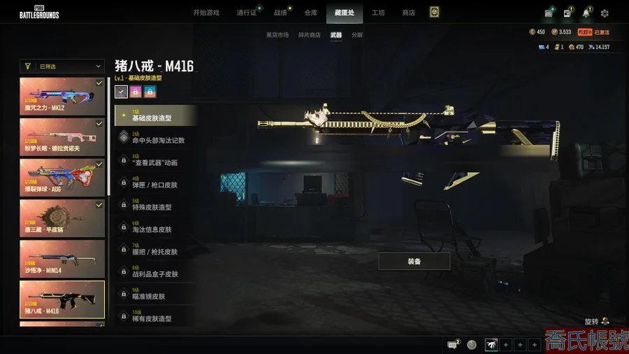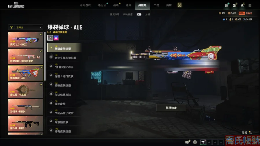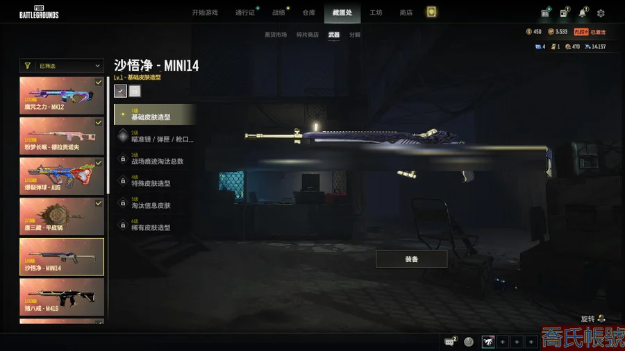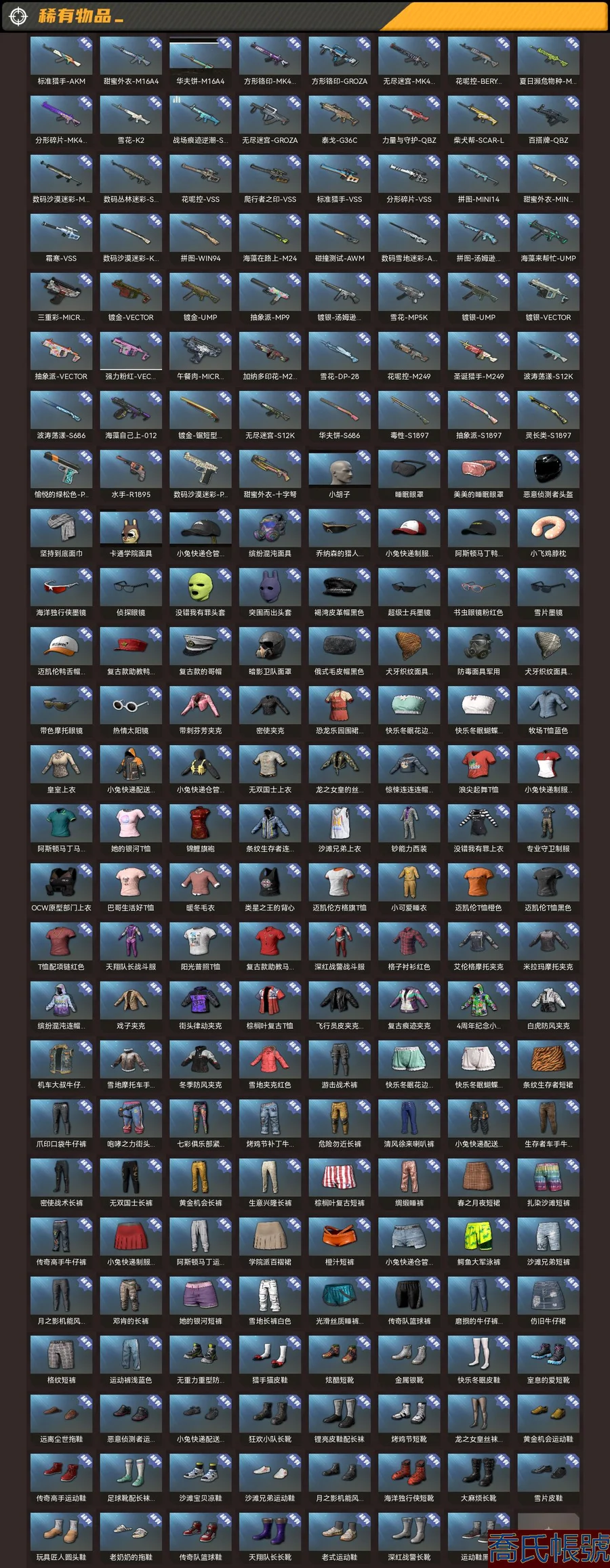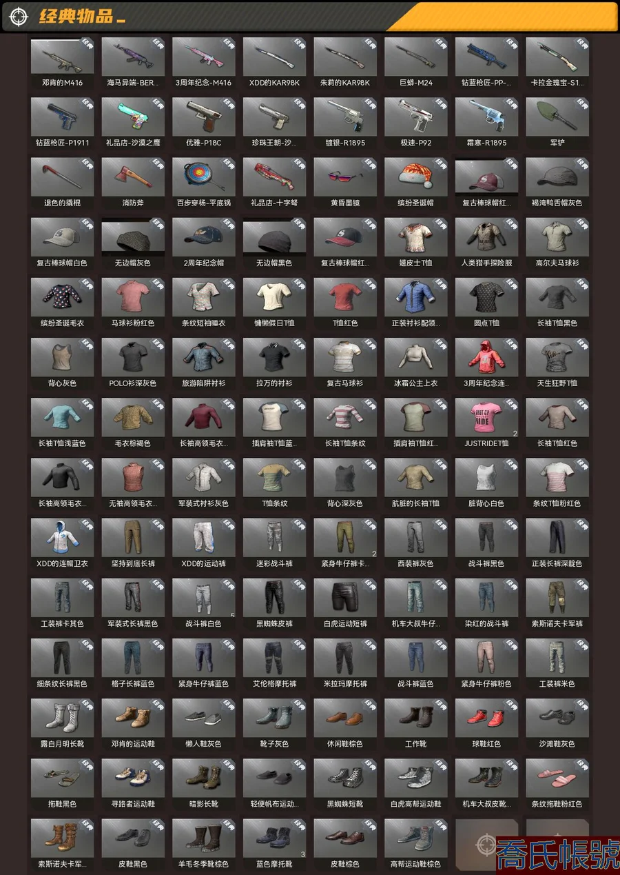 生存等級2500;異色皮膚2;成長型武器13;槍皮412;載具27;熱門物品: