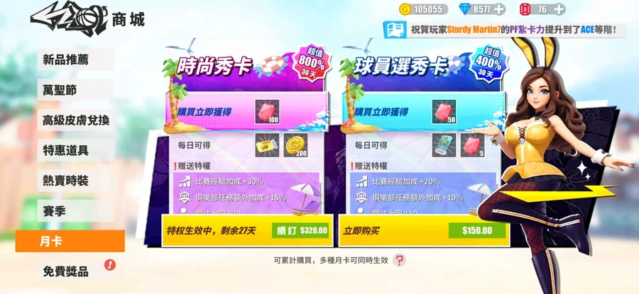 📅 月卡狀況:已開啟 320 元月卡,目前還有 27 天效期。
