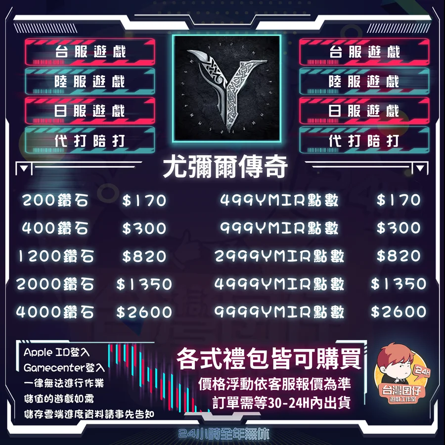 6️台灣囝仔台陸手遊代儲純粹為協助代儲服務,僅收取服務費,無賺取額外差價。