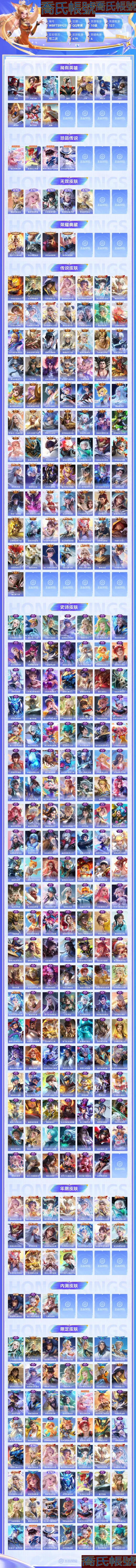 【OBWBFTS992342】 珍品傳說4 無雙5 典藏4 星元7 傳說78 史詩146 限定164 英雄127 皮膚479 稀有英雄10 貴族10級 總場次8034 皮膚價值:463756 【珍品傳說4】 瑤大耳狗之夢 孫策時之奇旅 魯班七號江戶川柯南 馬可波羅怪盜基德 【無雙皮膚5】 曜器靈螭龍劍 甄姬雪境奇遇 公孫離離恨煙 韓信群星魔術團 李白碎月劍心 【榮耀典藏4】 花木蘭九霄神輝 李白鳴劍曳影 關羽赤影疾鋒 韓信弒槍獵影 【星元皮膚7】 蘭陵王荊棘舞步 諸葛亮蒼靈仙君 李白玉鸞吟 劉備時之思念 孫尚香未來機甲 宮本武藏幽冥之眼 貂蟬金色仲夏夜 【傳說皮膚78】 孫悟空地獄火 后羿神樹通天 元歌詭秘之主 虞姬願照歲時盈 蔡文姬願照福祿聚 妲己願照眾生和 瀾願照九州拓 雲纓幻光神槍 女媧願照千秋盛 司空震願照山河定 嬴政玄雷天君 干將莫邪畫中仙 桑啟鳴野蒿 莊周牧神詩旅 馬可波羅妄想實況 孫悟空零號赤焰 虞姬雲霓雀翎 露娜啟示之音 伽羅熾翼輝光 呂布遇見神鼓 蘭陵王默契交鋒 夏侯惇霜北刀 關羽武聖 鎧冥王哈迪斯 李元芳飛鳶探春 艾琳覓芳蹤 宮本武藏驚梅引 典韋戰鼓燎原 蔡文姬花朝如約 張良黃金白羊座 趙雲淬星耀世 小喬音你心動 周瑜音你心動 孫臏小動物樂團 露娜霜月吟 東皇太一灼幽烈陽 花木蘭冠軍飛將 百里守約碎雲 后羿黃金射手座 西施游龍清影 貂蟬仲夏夜之夢 孫尚香末日機甲 朵莉亞心動手記 孫策末日機甲 李白詩劍行 瀾電玩雷克斯 諸葛亮時雨天司 百里玄策白虎志 夢奇胖達榮榮 李白鳳求凰 瀾逐花歸海 呂布天魔繚亂 墨子黃金天蠍座 狄仁傑神器狴犴令 狄仁傑超時空戰士 鎧琥珀紀元 李信一念神魔 宮本武藏地獄之眼 諸葛亮武陵仙君 亞連落雪白狼 干將莫邪久勝戰神 呂布曦玄引 裴擒虎寅虎赤拳 達摩黃金獅子座 虞姬啟明星使 孫尚香乘龍問璇璣 趙雲乘龍銘鐘鼎 孫策乘龍淬吳鉤 呂布怒海麟威 劉備時之戀人 馬超琥珀紀元 鏡熾陽神光 狄仁傑夜禮服假面 馬超無雙飛將 李信山海熾霜斬 曜李逍遙 孫策摯愛之約 曜雲鷹飛將 【史詩皮膚146】 少司緣巫禮祀神 哪吒雪上飛焰 女媧萬靈啟世 萊西奧光弋星穹 西施織夢人 公孫離塗山容容 周瑜百相守夢 黃忠百相守夢 阿軻暗夜貓娘 牛魔星界戰將 扁鵲靈蠱蝕心 老夫子藏狐褐絨 劉禪鴨鴨歷險記 狂鐵龍之律動 阿軻化蝶舞 公孫離無限星賞官 王昭君偶像歌手 趙雲引擎之心 蒙犽龍鼓爭鳴 墨子龍騎士 白起蒼鱗隱世 關羽冰鋒戰神 墨子降魔 姬小滿飛車小橘子 孫臏茶境仙 劉禪紳士熊喵 阿軻迷蹤麗影 百里守約百相守夢 姬小滿妄想食味 趙雲未來紀元 蔡文姬舞動綠茵 亞連破空之劍 李白謫仙醉月 馬可波羅星界特工 小喬繽紛獨角獸 弈星熾弈燎原 鍾馗樂園奇幻夜 姬小滿戰舞者 馬可波羅逐夢之星 花木蘭默契交鋒 少司緣塗山紅紅 大司命東方月初 蒙犽頑巖魄 孫悟空至尊寶 蔡文姬夏日便利店 艾琳奇遇舞章 上官婉兒神器永珍筆 暃埋骨錢 阿軻節奏熱浪 海月浮夢羅煙 桑啟奇遇星旅 露娜紫霞仙子 伽羅箭羽風息 大喬白蛇 米萊狄完美假期 劉禪電玩爆裂旋風 明世隱夜落電臺 莊周天秀幻夢 孫尚香時之戀人 嬴政暗夜貴公子 鎧曙光守護者 百里守約真我赫茲 安琪拉時之奇旅 韓信白龍吟 百里玄策熱力迴旋 貂蟬喚靈魅影 萊西奧末日機甲 安琪拉魔法小廚娘 嬴政搖滾巨星 羋月浮光幕影 瑤遇見神鹿 黃忠怒海爭鋒 海諾心動手記 鏡青焰無極 劉禪天才門將 大喬貓狗日記 上官婉兒群星魔術團 馬超神威 夏侯惇乘風破浪 安琪拉心靈駭客 貂蟬聖誕戀歌 魯班七號蔬鄉物語 阿古朵頑趣 西施詩語江南 老夫子航海奇遇記 娜可露露晚螢 白起星夜王子 后羿如夢令 百里玄策超元獵域 妲己女僕咖啡 蔡文姬奇蹟聖誕 黃忠烈魂 孫悟空孫行者 曹操夜都魔契 不知火舞魅語 楊戩天秀啟明 諸葛亮黃金分割率 大喬乘龍憶丹青 安琪拉乘龍聚寶船 夏洛特永晝 司馬懿暗淵魔法 小喬青蛇 伽羅琥珀紀元 高漸離燃音魔法 弈星滕王閣序 魯班七號電玩小子 程咬金功夫廚神 后羿輝光之辰 張飛亂世虎臣 曹操幽靈船長 蒙恬榮光聖徽 公孫離玉兔公主 甄姬冰雪圓舞曲 蒙犽百解令 百里守約特工魅影 李白千年之狐 亞瑟心靈戰警 墨子金屬風暴 百里玄策原初追逐者 扁鵲奇幻香蹤 李元芳逐浪之夏 馬可波羅山海玄木吟 呂布末日機甲 夢奇頑趣 元歌無心 孫尚香水果甜心 鬼谷子五穀豐年 廉頗地獄巖魂 瀾賞金獵手 宮本武藏鬼劍武藏 狄仁傑魔術師 韓信傲雪梅槍 元歌雲間偶戲 黃忠火炮紳士 雅典娜黎明之約 雲中君時之祈願 蘭陵王暗隱獵獸者 劉邦德古拉伯爵 趙雲皇家上將 孫策貓狗日記 嫦娥拒霜思 狄仁傑鷹眼統帥 橘右京修羅 花木蘭水晶獵龍者 妲己魅力維加斯 呂布聖誕狂歡 【年限皮膚18】 虞姬願照歲時盈 蔡文姬願照福祿聚 妲己願照眾生和 瀾願照九州拓 女媧願照千秋盛 司空震願照山河定 諸葛亮時雨天司 百里玄策白虎志 李白鳳求凰 裴擒虎寅虎赤拳 大喬乘龍憶丹青 安琪拉乘龍聚寶船 孫尚香乘龍問璇璣 趙雲乘龍銘鐘鼎 孫策乘龍淬吳鉤 后羿輝光之辰 李信山海熾霜斬 馬可波羅山海玄木吟 【內測皮膚3】 高漸離玩趣惡龍 姬小滿妄想食味 艾琳女武神 【限定皮膚164】 少司緣巫禮祀神 后羿神樹通天 高漸離玩趣惡龍 艾琳鶴鳴心箋 女媧萬靈啟世 張良羅小黑戰記 亞瑟榮光之誓 明世隱往憶暉光 萊西奧光弋星穹 哪吒羅小黑戰記 西施織夢人 公孫離塗山容容 