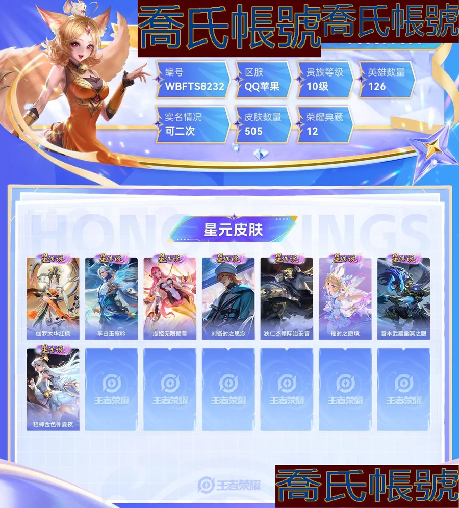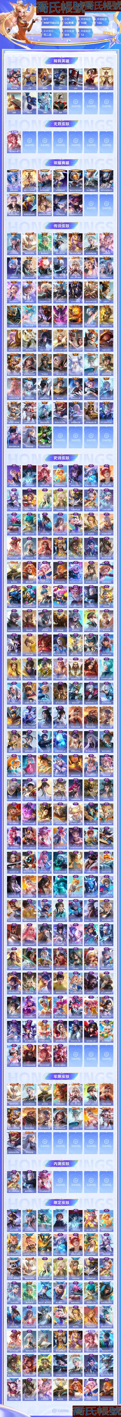 【OBWBFTS823242】 無雙1 典藏12 星元8 傳說59 史詩172 限定192 英雄126 皮膚505 稀有英雄11 貴族10級 總場次14429 皮膚價值:621782 【無雙皮膚1】 妲己青丘九尾 【榮耀典藏12】 貂蟬幻闕歌 花木蘭九霄神輝 韓信弒槍獵影 鎧銀白詠嘆調 魯班七號星空夢想 李白鳴劍曳影 夏侯惇無限颶風號 諸葛亮星域神啟 孫悟空全息碎影 武則天倪克斯神諭 小喬天鵝之夢 孫尚香殺手不太冷 【星元皮膚8】 伽羅太華紅楓 李白玉鸞吟 虞姬無限傾慕 劉備時之思念 狄仁傑星際治安官 瑤時之願境 宮本武藏幽冥之眼 貂蟬金色仲夏夜 【傳說皮膚59】 亞連落雪白狼 瀾願照九州拓 桑啟鳴野蒿 馬超無雙飛將 墨子黃金天蠍座 趙雲乘龍銘鐘鼎 艾琳覓芳蹤 瀾逐花歸海 雲纓鶴歸松棲 瀾電玩雷克斯 蘭陵王默契交鋒 李信山海熾霜斬 夏洛特浮生妄 干將莫邪畫中仙 虞姬無限傾心 項羽無限傾心 孫悟空齊天大聖 呂布怒海麟威 呂布天魔繚亂 孫悟空零號赤焰 女媧補天 孫策末日機甲 瑤時之祈願 鎧絳天戰甲 宮本武藏地獄之眼 孫悟空地獄火 趙雲淬星耀世 達摩黃金獅子座 張良黃金白羊座 鏡熾陽神光 李信一念神魔 花木蘭冠軍飛將 干將莫邪久勝戰神 夢奇胖達榮榮 劉備時之戀人 魯班七號寅虎瑞焰 裴擒虎寅虎赤拳 關羽武聖 曜雲鷹飛將 孫尚香異界靈契 伽羅太華 貂蟬遇見胡旋 王昭君乞巧織情 西施游龍清影 虞姬雲霓雀翎 曜李逍遙 周瑜音你心動 小喬音你心動 武則天海洋之心 李元芳飛鳶探春 公孫離祈雪靈祝 虞姬啟明星使 百里玄策白虎志 貂蟬貓影幻舞 后羿黃金射手座 狄仁傑超時空戰士 貂蟬仲夏夜之夢 李白鳳求凰 孫尚香末日機甲 【史詩皮膚172】 黃忠百相守夢 后羿石田雨龍 海月浮夢羅煙 劉禪鴨鴨歷險記 扁鵲靈蠱蝕心 百里守約雪豹霜爪 狂鐵龍之律動 阿軻化蝶舞 亞連糖繪人間 趙懷真器靈浮夢爐 孫臏茶境仙 牛魔星界戰將 姬小滿妄想食味 上官婉兒梁祝 廉頗撼地雄心 亞連破空之劍 孫悟空至尊寶 大司命東方月初 蔡文姬夏日便利店 暃埋骨錢 弈星滕王閣序 羋月浮光幕影 鏡青焰無極 貂蟬喚靈魅影 典韋藍色畫面警告 魯班七號蔬鄉物語 高漸離燃音魔法 蒙恬榮光聖徽 典韋岱宗 蒙犽百解令 阿古朵江河有靈 司空震地獄燃心 李元芳匿光偵查者 趙懷真鶴歸松棲 戈婭馭風魔法 趙雲引擎之心 劉禪電玩爆裂旋風 扁鵲奇幻香蹤 蔡文姬電玩兔頑號 沈夢溪匿光破解者 嬴政優雅戀人 夢奇頑趣 馬可波羅暗影遊獵 黃忠烈魂 趙雲龍膽 張飛虎魄 暃星界遊俠 馬可波羅山海玄木吟 夏洛特永晝 元歌無心 阿古朵頑趣 墨子龍騎士 鍾無豔超時空戰士 鬼谷子五穀豐年 李元芳銀河之約 狂鐵電玩高手 公孫離玉兔公主 趙雲百木心槍 瀾賞金獵手 艾琳奇遇舞章 項羽蒼穹之光 露娜一生所愛 雲中君時之祈願 周瑜真愛至上 劉禪紳士熊喵 哪吒雪上飛焰 張飛亂世虎臣 韓信白龍吟 嬴政暗夜貴公子 趙雲未來紀元 呂布末日機甲 百里守約特工魅影 后羿如夢令 嫦娥如夢令 孫臏寅虎展翼 廉頗寅虎御盾 楊玉環寅虎心曲 雅典娜黎明之約 韓信傲雪梅槍 鎧曙光守護者 鍾馗樂園奇幻夜 蒙犽龍鼓爭鳴 司馬懿暗淵魔法 黃忠火炮紳士 花木蘭青春決賽季 鏡匿光追影者 甄姬女兒國國王 雅典娜冰冠公主 廉頗地獄巖魂 孫策貓狗日記 嫦娥拒霜思 百里玄策原初追逐者 嬴政搖滾巨星 莊周高山流水 妲己時之彼端 阿軻暗夜貓娘 馬超神威 大喬白蛇 豬八戒豬悟能 干將莫邪真愛魔法 楊玉環遇見飛天 孫悟空孫行者 安琪拉時之奇旅 墨子金屬風暴 沈夢溪月團寄思 阿軻節奏熱浪 花木蘭水晶獵龍者 孫尚香薔薇戀人 公孫離蜜橘之夏 公孫離無限星賞官 楊戩天秀啟明 老夫子航海奇遇記 韓信逐夢之影 魯班七號乒乒小將 伽羅天狼溯光者 蘭陵王暗隱獵獸者 大喬白鶴梁神女 呂布聖誕狂歡 劉禪天才門將 劉邦德古拉伯爵 王昭君鳳凰于飛 橘右京修羅 曹操幽靈船長 百里玄策熱力迴旋 關羽冰鋒戰神 馬可波羅逐夢之星 米萊狄胡桃異想國 諸葛亮黃金分割率 李元芳逐浪之夏 西施詩語江南 亞瑟心靈戰警 東皇太一逐夢之光 伽羅箭羽風息 程咬金功夫廚神 大喬貓狗日記 孫尚香時之戀人 羋月白晶晶 干將莫邪冰霜戀舞曲 魯班七號電玩小子 花木蘭默契交鋒 娜可露露晚螢 元歌雲間偶戲 孫臏天狼運算者 虞姬霸王別姬 小喬青蛇 蔡文姬奇蹟聖誕 雲中君纖雲弄巧 蒙犽狂想玩偶喵 瑤遇見神鹿 莊周雲端築夢師 裴擒虎李小龍 蔡文姬繁星吟遊 白起星夜王子 狄仁傑鷹眼統帥 不知火舞魅語 王昭君偶像歌手 夏侯惇乘風破浪 蔡文姬舞動綠茵 安琪拉心靈駭客 小喬繽紛獨角獸 露娜紫霞仙子 甄姬冰雪圓舞曲 狄仁傑魔術師 孫尚香水果甜心 貂蟬聖誕戀歌 李白千年之狐 趙雲皇家上將 妲己熱情桑巴 小喬純白花嫁 宮本武藏鬼劍武藏 妲己女僕咖啡 妲己魅力維加斯 【年限皮膚16】 瀾願照九州拓 趙雲乘龍銘鐘鼎 典韋岱宗 孫悟空美猴王 李信山海熾霜斬 馬可波羅山海玄木吟 孫臏寅虎展翼 魯班七號寅虎瑞焰 廉頗寅虎御盾 楊玉環寅虎心曲 裴擒虎寅虎赤拳 伽羅太華 王昭君鳳凰于飛 公孫離祈雪靈祝 百里玄策白虎志 李白鳳求凰 【內測皮膚3】 姬小滿妄想食味 嬴政優雅戀人 孫尚香薔薇戀人 【限定皮膚192】 鬼谷子克喵 亞連落雪白狼 甄姬逆浪荇歌 白起死霸裝 后羿石田雨龍 姬小滿小滿鴨 劉禪鴨鴨歷險記 沈夢溪鴨鴨歷險記 阿古朵布丁狗之約 鍾馗虛靈犬護 百里守約