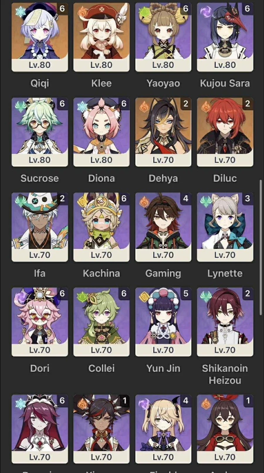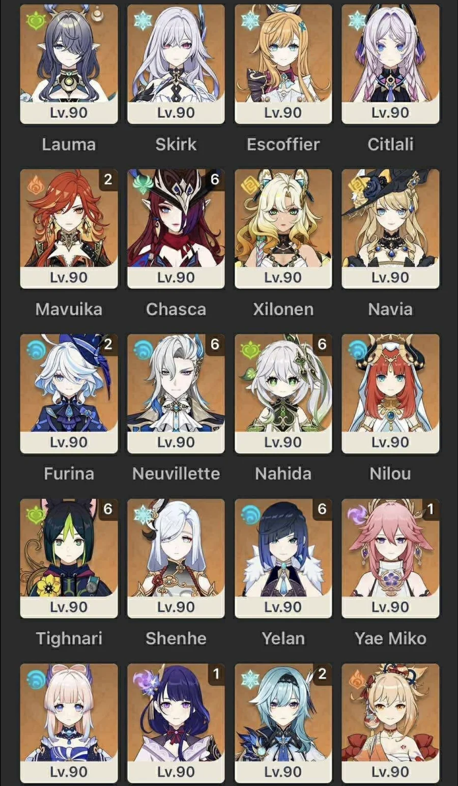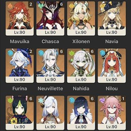 【女、60等、65金角、62金武】G77_恰斯卡6+1那維萊特6+1草神6+2夜蘭6+0火神2+1菈烏瑪絲柯克愛可