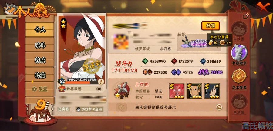 【OBHLLHW585242】戰鬥力:1711W+;段位:上忍1階;本服排名:35;戰區排名:未上榜;VIP11級;S忍30個;A忍45個;通靈獸24個;S忍:綱手(5星),猿飛日斬(5星),仙人模式自來也(4星),暴怒第六尾漩渦鳴人,九喇嘛連結漩渦鳴人,永恆萬花筒宇智波佐助,忍界大戰春野櫻,須佐能乎旗木卡卡西,舞之豪傑自來也,傳說中的三忍自來也,大蛇丸,死門邁特凱,波風水門,穢土轉生猿飛日斬,木葉創立千手柱間,木葉創立宇智波斑,穢土轉生解宇智波斑,須佐能乎宇智波鼬,神秘面具男,白面具宇智波斑,忍界大戰宇智波帶土,紅夜之刃神秘面具男,初代目風影烈鬥,忍界大戰艾,忍界大戰大野木,天道佩恩,穢土轉生長門,最終章大筒木舍人,大筒木桃式,大筒木金式;A忍:邁特凱(5星),猿飛阿斯瑪(5星),蠍(5星),幹柿鬼鮫(5星),死司憑血飛段(4星),疾風傳我愛羅(3星),緋流琥蠍(3星),飛段(3星),九尾查克拉漩渦鳴人,萬花筒寫輪眼宇智波佐助,須佐能乎宇智波佐助,宇智波泉奈,百豪春野櫻,忍界大戰秋道丁次,忍界大戰日向寧次,忍界大戰李洛克,最終章日向雛田,宇智波止水,青年波風水門,忍界大戰我愛羅,近松十人衛千代,五代目水影照美冥,夏日泳裝照美冥,穢土轉生桃地再不斬,奇拉比,青年艾,半蛇斗篷藥師兜,不風,不緣,青年長門,夏日泳裝小南,漂泊浪客小南,黑絕,穢土轉生角都,宇智波鼬,夏日限定宇智波鼬,迪達拉,穢土轉生迪達拉,漂泊浪客宇智波帶土,羈絆神農,五代目雷影達魯伊,桃式顯現漩渦博人,六代目水影長十郎,四代目土影黑土,夏日限定黑土;通靈獸:忍犬,藍蛇,砂之守鶴,蛤蟆吉,忍龜,鐮鼬,猿魔,山椒魚,蜃,蛤蟆仙人,鮫鯊,蛤蟆健,烏鴉,蛞蝓,蛤蟆龍,怒鬼爪,蛤蟆廣,夢貘,萬蛇,怒鬼無臂,怒鬼,辛牙,鷹,蜘蛛;時裝:蜀面豪傑舞之豪傑自來也,桀驁之刃猿飛阿斯瑪,百戰波風水門,狂野鮫鯊幹柿鬼鮫,百戰宇智波鼬須佐能乎,百戰佩恩天道,百戰大蛇丸,太極靈韻日向花火武當宗師,晴浪礁歌黑土夏日限定,傳說的光芒波風水門,智勇記者宇智波佐良娜,緋櫻綻放春野櫻百豪,烈土霓裳黑土四代目土影,驕陽翠羽照美冥夏日泳裝,命定之戰宇智波佐助疾風傳,飛瀑流泉長十郎六代目水影,血霧怪人幹柿鬼鮫,驚雷掠影達魯伊五代目雷影,龍的傳人李洛克截拳宗師,熊貓少女天天峨眉宗師;【1000】便宜賣了
