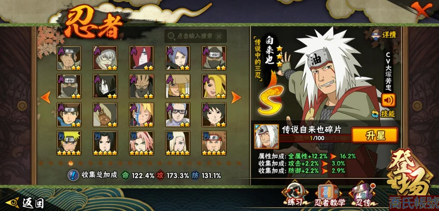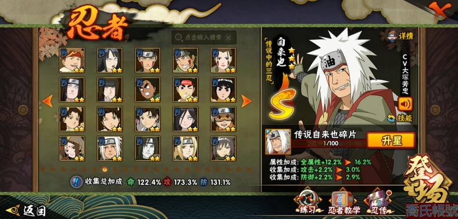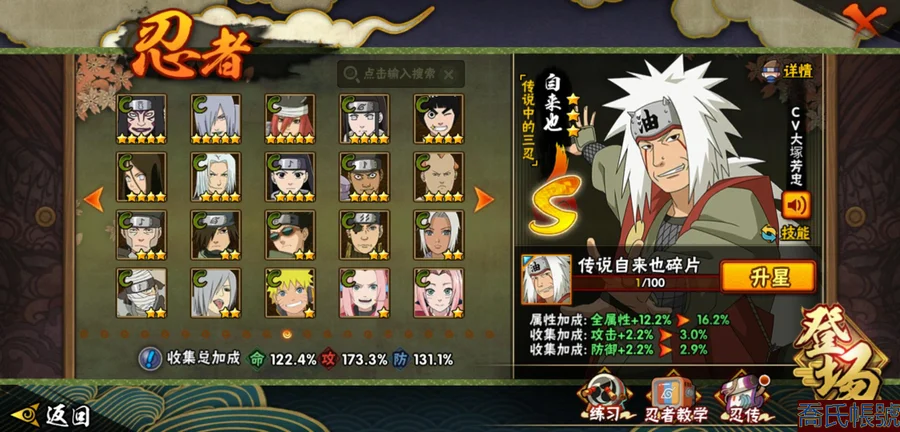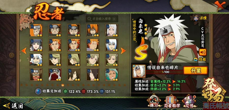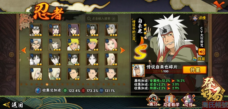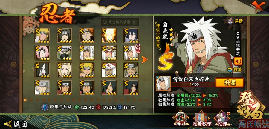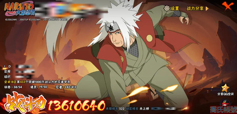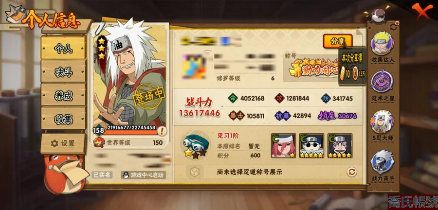 【OBHLLHW264242】戰鬥力:1361W+;段位:見習1階;本服排名:522;戰區排名:未上榜;VIP8級;S忍28個;A忍47個;通靈獸19個;S忍:波風水門(4星),須佐能乎宇智波鼬(4星),天道佩恩(4星),九喇嘛連結漩渦鳴人,永恆萬花筒宇智波佐助,忍界大戰春野櫻,須佐能乎旗木卡卡西,自來也,舞之豪傑自來也,傳說中的三忍自來也,大蛇丸,綱手,穢土轉生波風水門,猿飛日斬,穢土轉生猿飛日斬,穢土轉生千手扉間,千手柱間,穢土轉生千手柱間,宇智波斑,穢土轉生宇智波斑,穢土轉生解宇智波斑,穢土轉生宇智波鼬,神秘面具男,白面具宇智波斑,忍界大戰宇智波帶土,四代目雷影艾,忍界大戰艾,仙人模式藥師兜;A忍:邁特凱(5星),猿飛阿斯瑪(5星),疾風傳我愛羅(5星),蠍(5星),幹柿鬼鮫(5星),死司憑血飛段(5星),飛段(4星),仙人模式漩渦鳴人(3星),忍界大戰我愛羅(3星),五代目水影照美冥(3星),宇智波鼬(3星),九尾查克拉漩渦鳴人,萬花筒寫輪眼宇智波佐助,須佐能乎宇智波佐助,宇智波泉奈,百豪春野櫻,忍界大戰秋道丁次,忍界大戰日向寧次,忍界大戰李洛克,幻之真容旗木卡卡西,萬花筒寫輪眼旗木卡卡西,穢土轉生猿飛阿斯瑪,宇智波止水,志村團藏,火影繼承人猿飛日斬,青年波風水門,近松十人衛千代,桃地再不斬,穢土轉生桃地再不斬,奇拉比,忍界大戰奇拉比,青年艾,忍界大戰土臺,半蛇斗篷藥師兜,青年長門,小南,角都,地怨虞角都,曉大蛇丸,緋流琥蠍,迪達拉,穢土轉生迪達拉,猿飛木葉丸,五代目雷影達魯伊,桃式顯現漩渦博人,六代目水影長十郎,四代目土影黑土;通靈獸:忍犬,藍蛇,蛤蟆吉,忍龜,鐮鼬,猿魔,山椒魚,蜃,蛤蟆仙人,鮫鯊,蛤蟆健,烏鴉,蛤蟆龍,蛤蟆廣,夢貘,砂之守鶴,蛞蝓,鷹,蜘蛛;時裝:百戰大蛇丸,百戰波風水門,百戰宇智波鼬須佐能乎,蜀面豪傑舞之豪傑自來也,百戰佩恩天道,太極靈韻日向花火武當宗師,緋櫻綻放春野櫻百豪,血霧怪人幹柿鬼鮫,龍的傳人李洛克截拳宗師,熊貓少女天天峨眉宗師,傳說的光芒波風水門,編織虛實宇智波鼬,可愛睡衣漩渦鳴人,剎那的藝術迪達拉,純白之心白;【18】