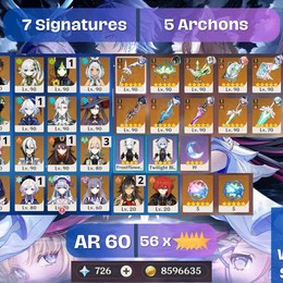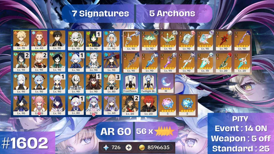 【男、60等、38金角、16金武】⭐時裝甘雨+僕人+1命凌華+閒雲+克洛琳德+雷草水神皆專武_時裝申鶴_2命萬葉