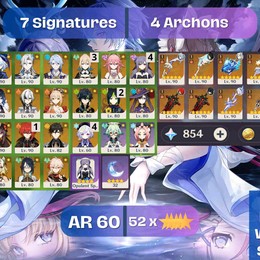 【女、60等、43金角、12金武】⭐絲科克+克洛林德+萊特+甘雨+胡桃皆專武_4命時裝刻晴_萬葉_基尼奇_艾梅莉埃
