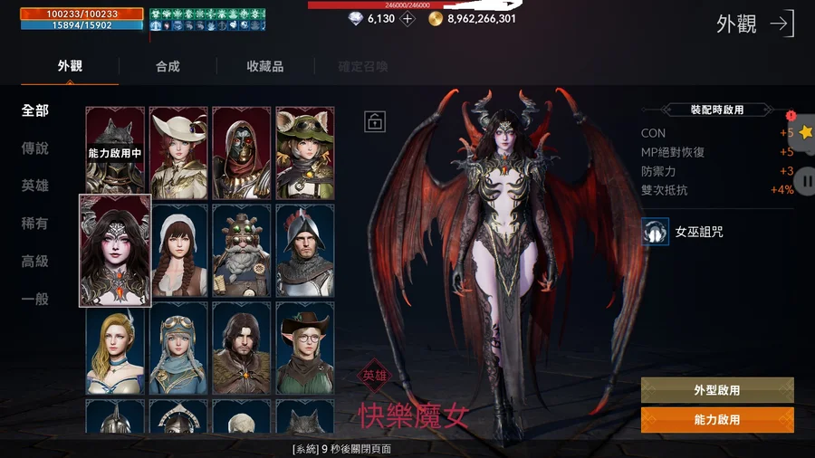 傷害714/命中767/技傷728/衝抗361/衝命320(穿下列裝,取換裝最大值)
